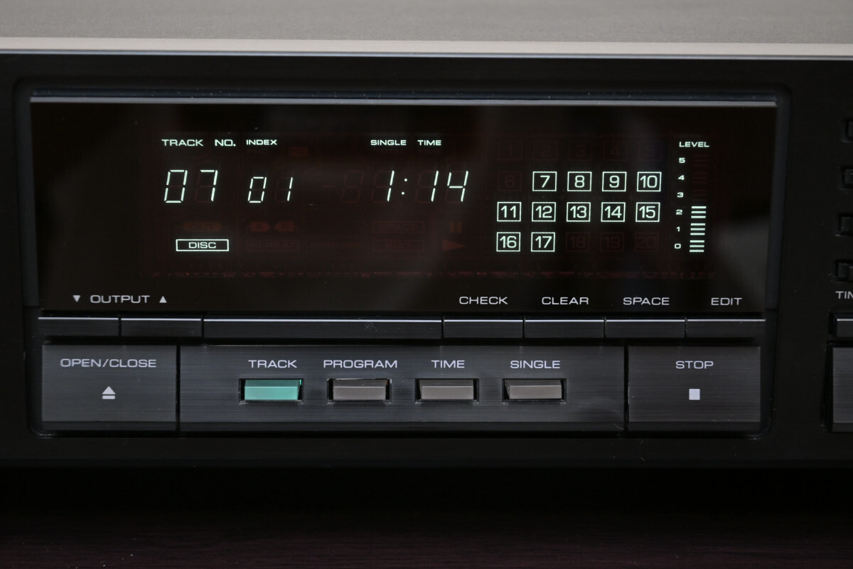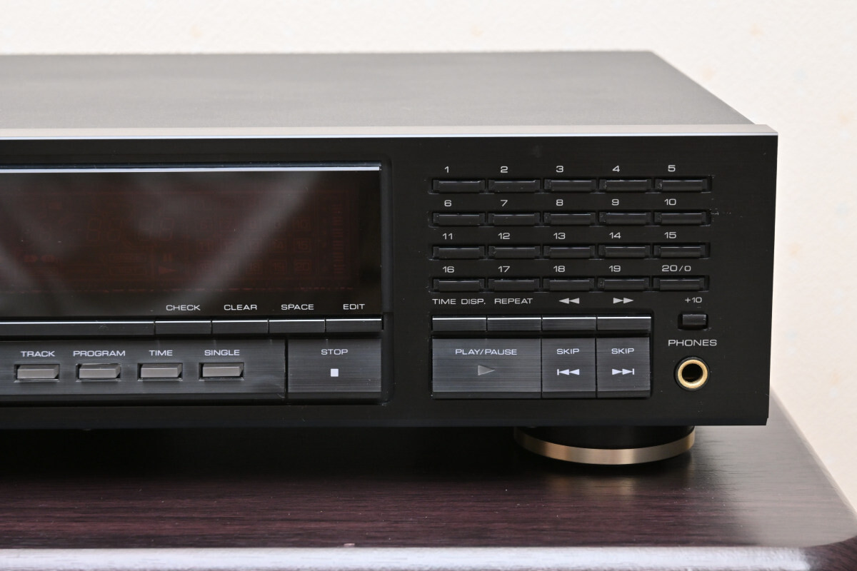 ★商品説明★ | 機材整理のため、出品します。 通常使用に伴う小キズなどはありますが、年代物の割には状態は良いと思います。 状態は写真にてご確認ください。 CDの読み込みも早く、動作は問題ありません。 ヘッドホン端子、アナログ出力、光デジタル出力にて音出し確認しました。 音質良好です。 表示も明瞭で見やすいです。 すべての機能をチェックしたわけではありません。 古い物ですのでチェック時には見つけきれなかった不具合も出る可能性があります。 また、輸送中の振動などでチェック時には無かった不具合が出る可能性もあります。 その辺りを含めてノークレームでお願いします。 |