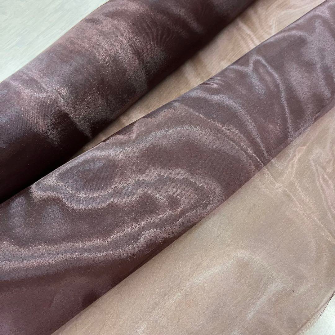 値下げ1反売り!ブラウン色の光沢オーガンジー(58m)