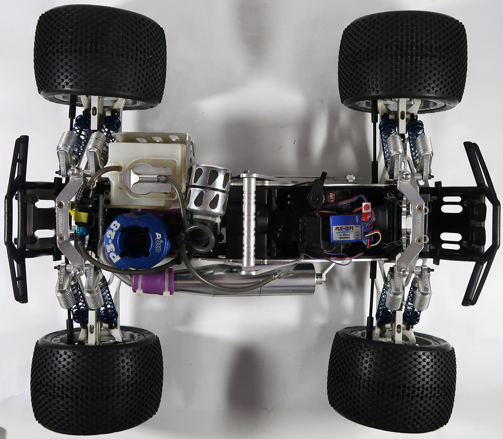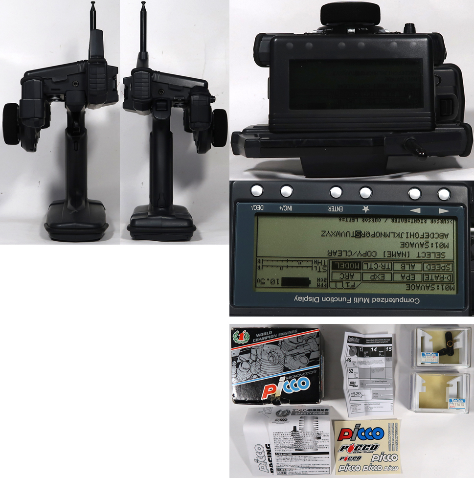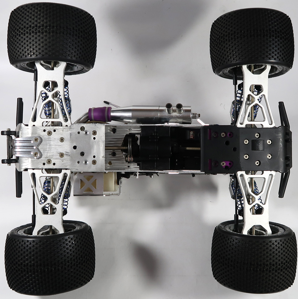 画像をご覧のようにかなりカスタムされておりますが、カスタムされているパーツは何がついているのか詳しくはわかりません。画像をご覧になってご判断ください。プロポはサンワ製です。サーボはERG-VRXとERG-VXが取り付けられております。エンジンはpicco製のP3 28 モンスタートラック用に取り替えられております。出品は画像の物が全てです。使用品ですので汚れや所々に擦り傷あります。シャフトやネジに錆もあります。ボディは塗装が剥がれている箇所がありますし、多少は割れている箇所もあります。ラバータイヤのサイドに多数の細かい亀裂があるので、タイヤは劣化しており交換が必要かと思われます。サーボや受信機は問題なく動作しております。エンジンは動作させる為の機器がないので一切テストは出来ておりません。タイヤは手で回せば回転します。サスも車体を上から押せば動作しております。プロポ及び受信機のバッテリーは充電されますし10分くらいつけっぱなしにしても、すぐに電源が切れることはなかったです。バッテリーは消耗品ですのでいかなる状態であったとしてもノークレームです。その他に私が見る限りは特にひどいダメージは確認出来ませんでした。走行させる為には細かいメンテナンスが必要ですし、エンジンを動作させるための機器が必要です。画像をご覧になってご自分でご確認ください。分かる事は以上です。お取引後は一切のサポートはしておりませんので問題があればご自分でご対処ください。お取り引き後に説明以外の不足品や説明以外の破損や故障が有ったとしても返品は出来ませんしクレームもお受けできません。