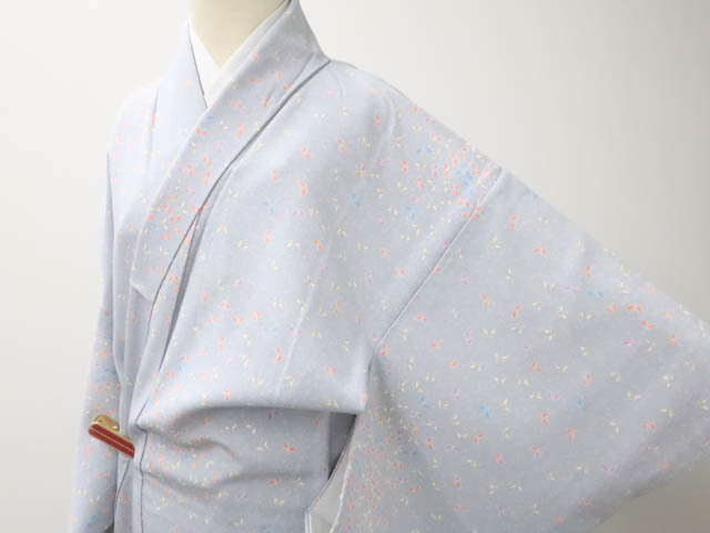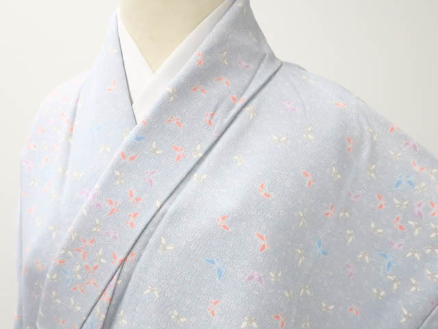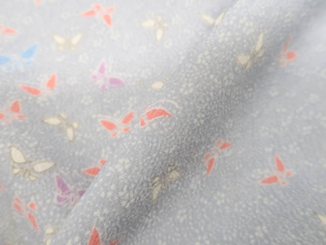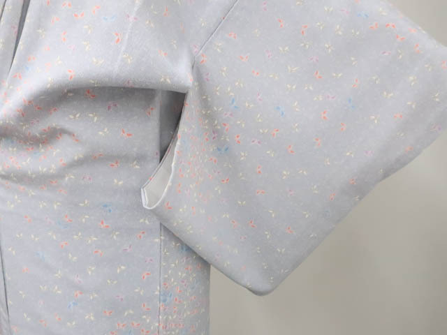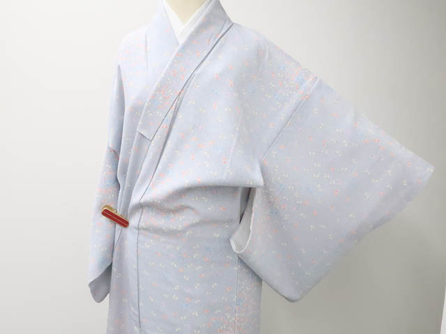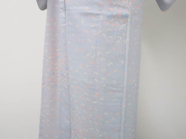 リサイクル商品のため、上前身頃に薄いシミ、衿折れ山や両袖口に薄汚れがございますが着用可能なお品です。 地色は、薄灰色です。 1枚目の画像が近いお色かと思われます。 素材は化繊です。 |