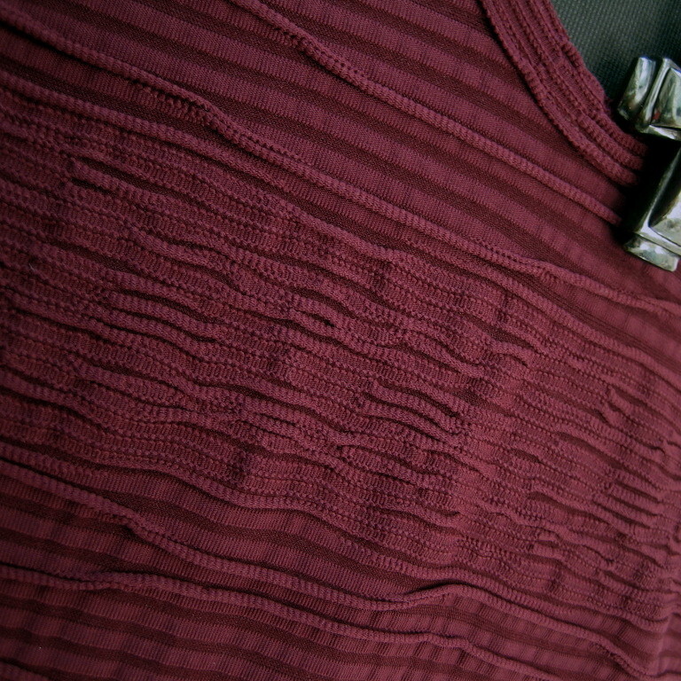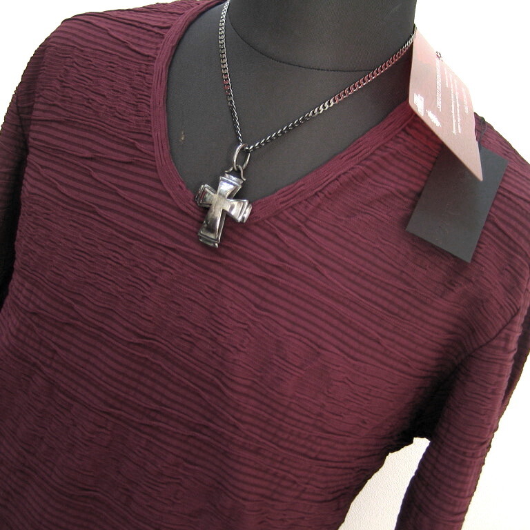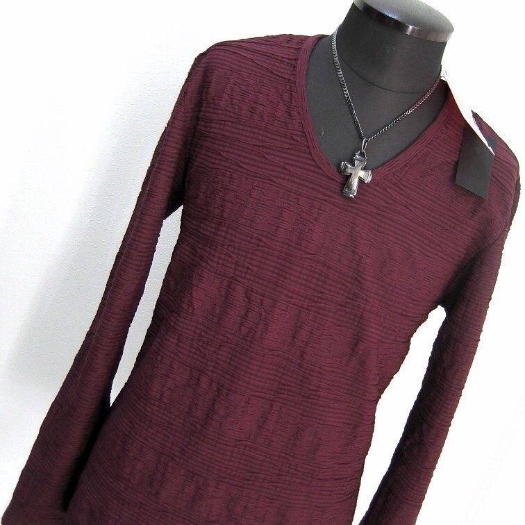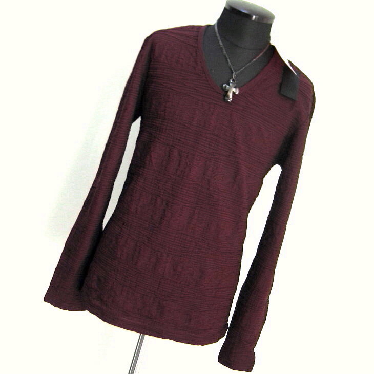 1.4万 新品 M トルネードマート ウェーブタックジャカードカットソー 長袖 Uネック ワイン 送料無料 095