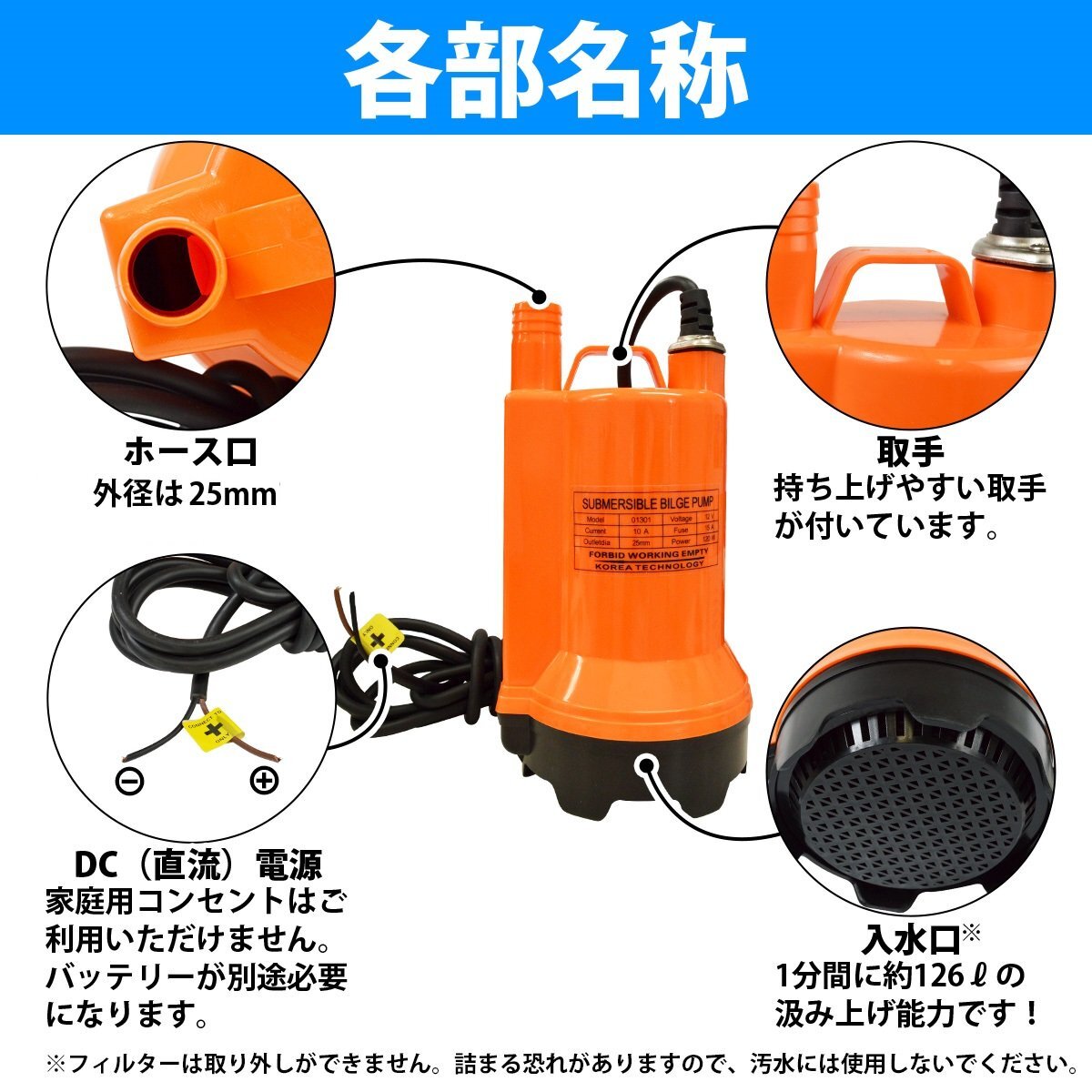 12V ビルジポンプ 2000GPH 海水 対応 毎分126L 水中ポンプ 船 ボート ヨット 船舶 漁船 汲み上げ ポンプ ガーデニングにも