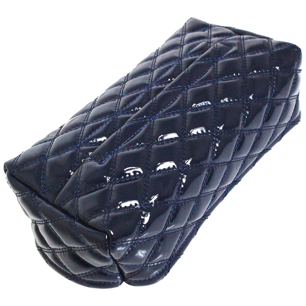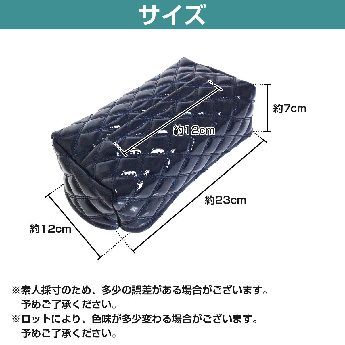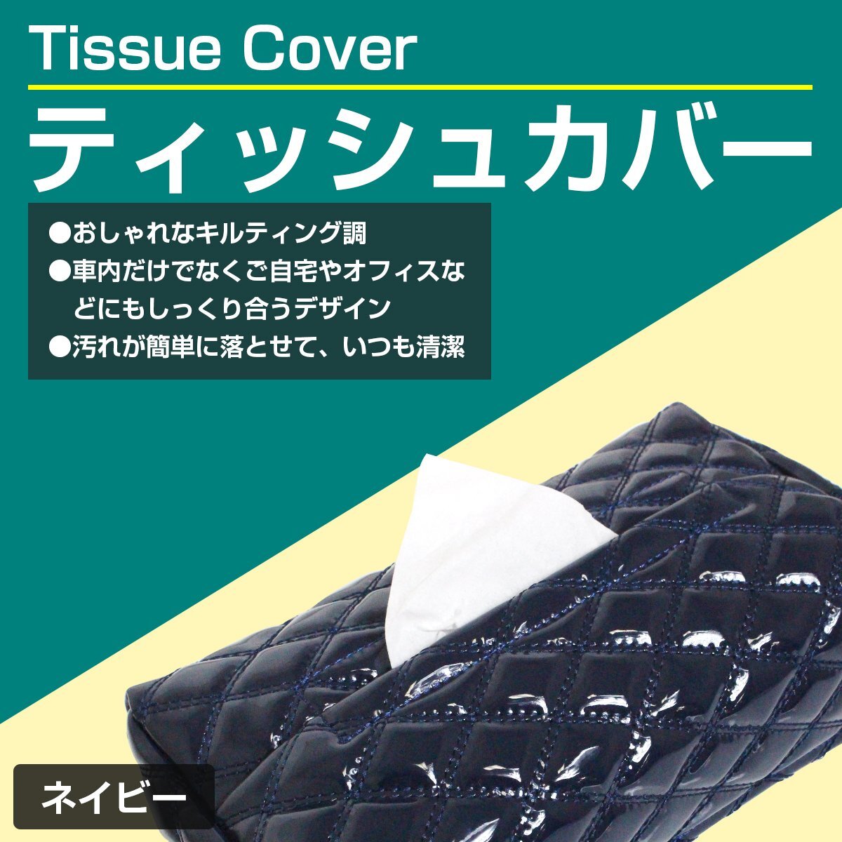 汎用 ティッシュケース ティッシュカバー 艶あり エナメル調 ダークブルー×ネイビー ダブルステッチ ダイヤカット キルティング デコトラ