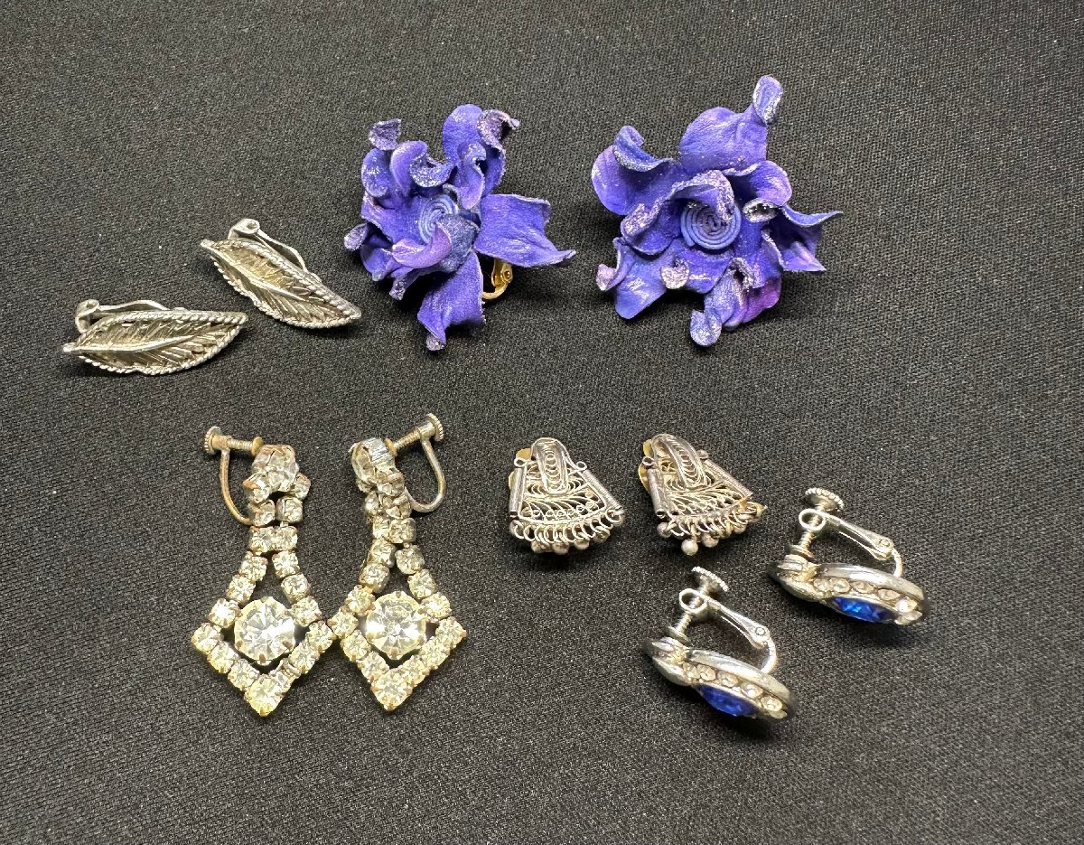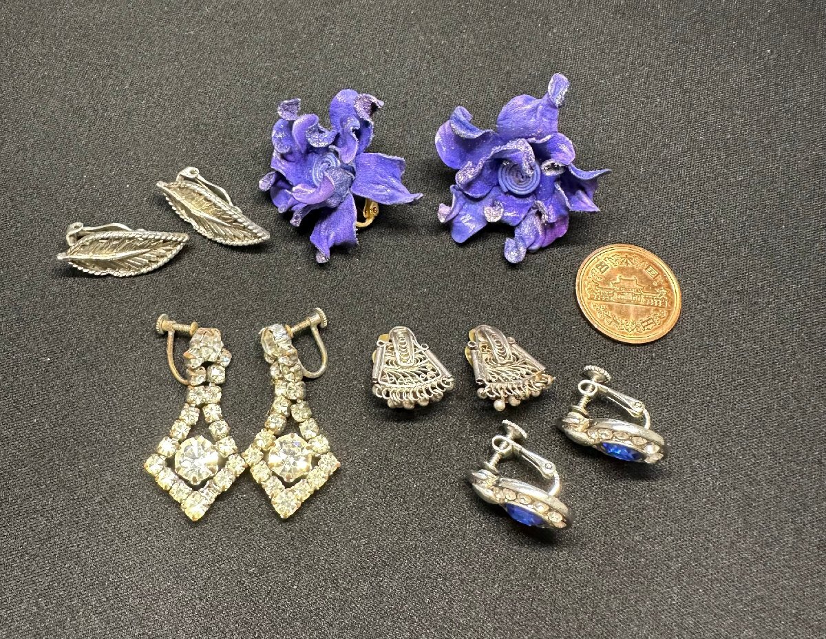 q2669 ヴィンテージ イヤリング アクセサリー レディース お花モチーフ ラインストーン ビジュー 上品 華やか 海外製 まとめ売り
