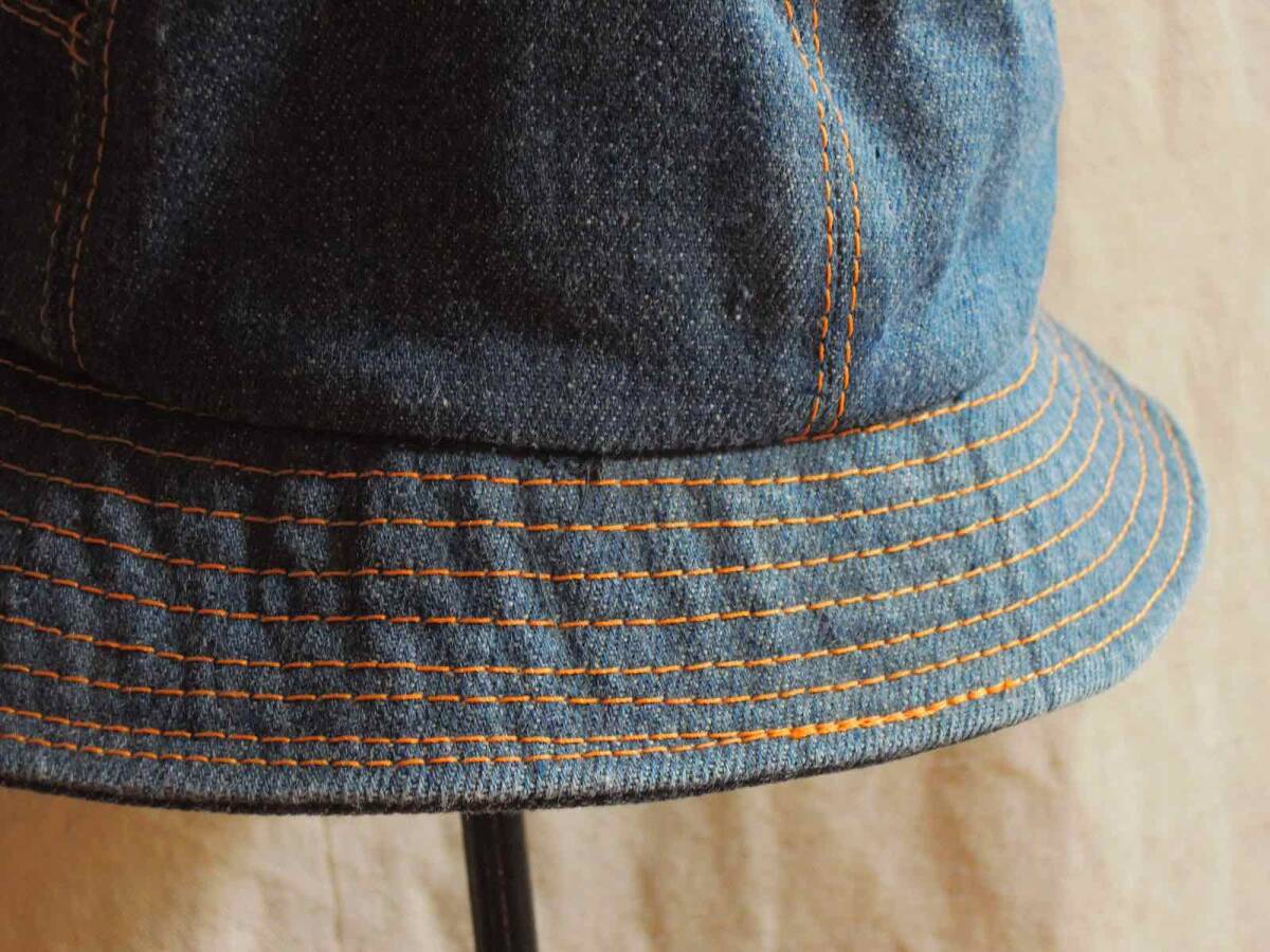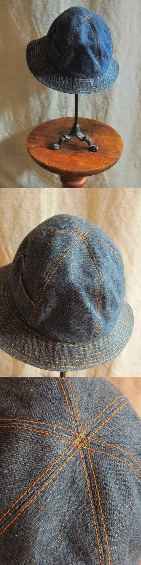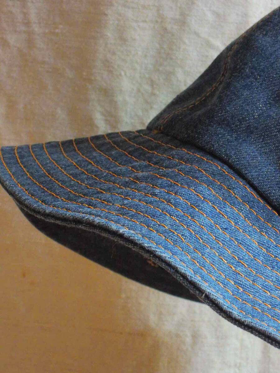 70s USA ビンテージ デニム ファティーグ ハット オレンジステッチ US ARMY モチーフ インディゴブルー ユーティリティ ミリタリー 帽子40s