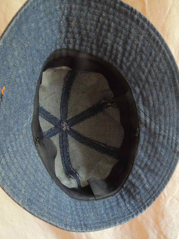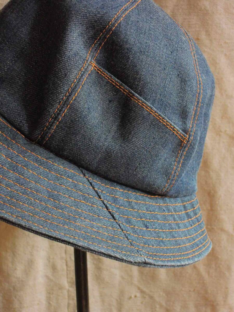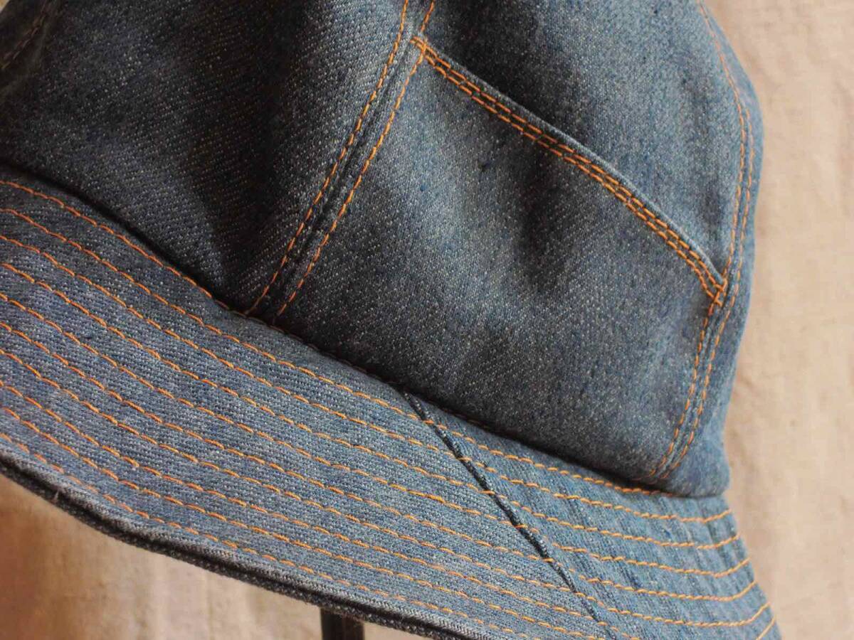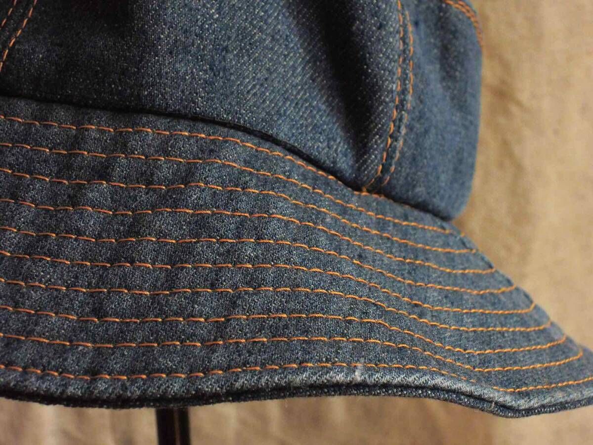 70s USA ビンテージ デニム ファティーグ ハット オレンジステッチ US ARMY モチーフ インディゴブルー ユーティリティ ミリタリー 帽子40s