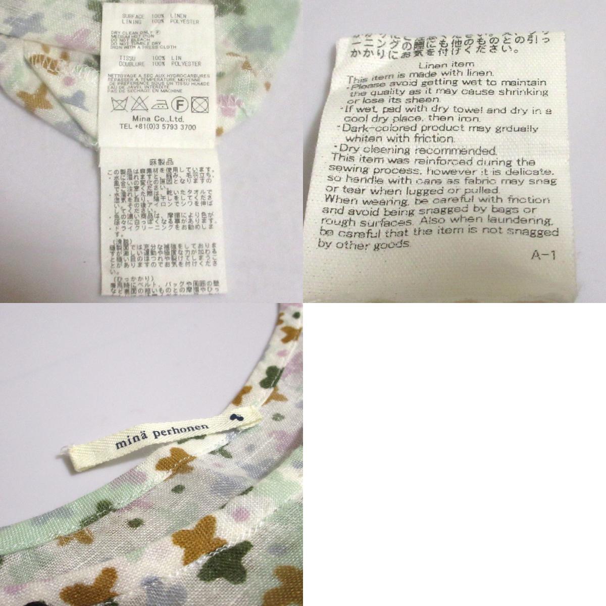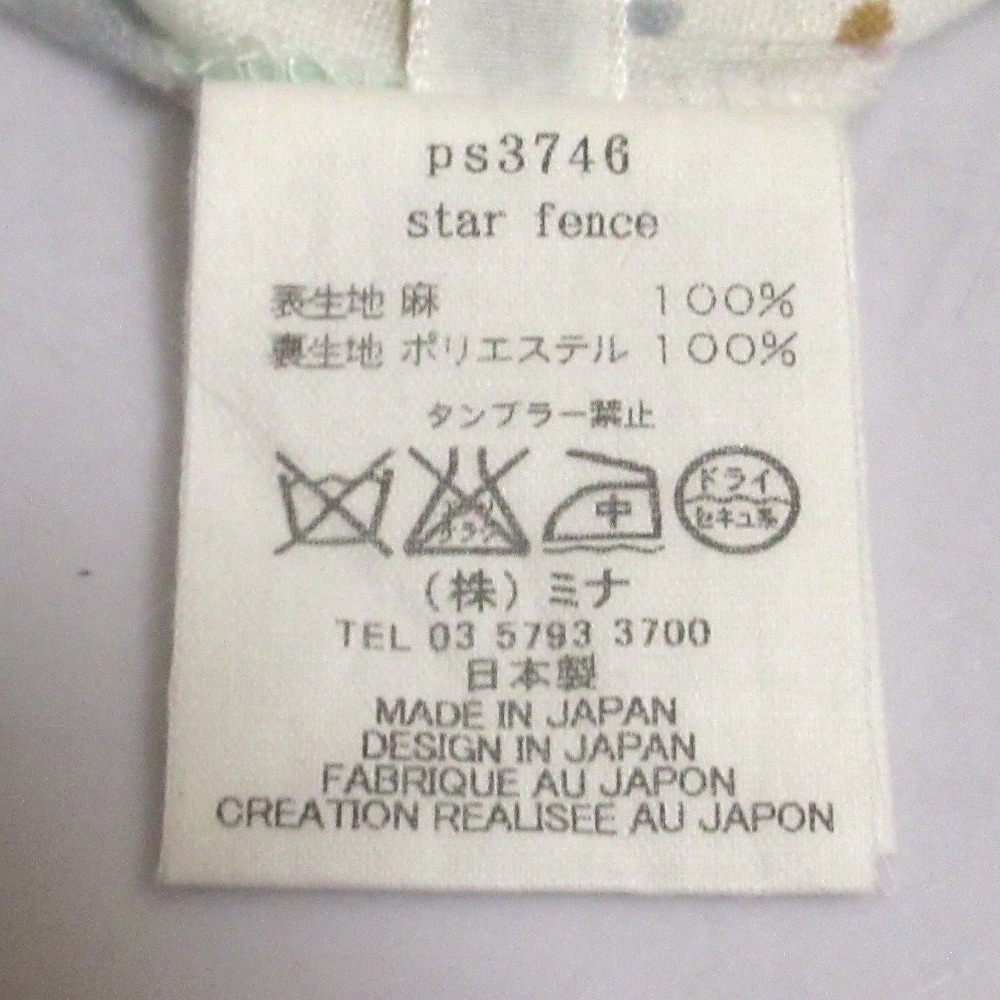 美品 mina perhonen ミナペルホネン star fence リネン フレンチスリーブ ワンピース サイズ36 マルチカラー