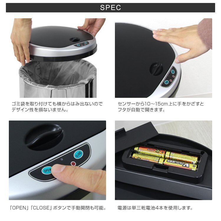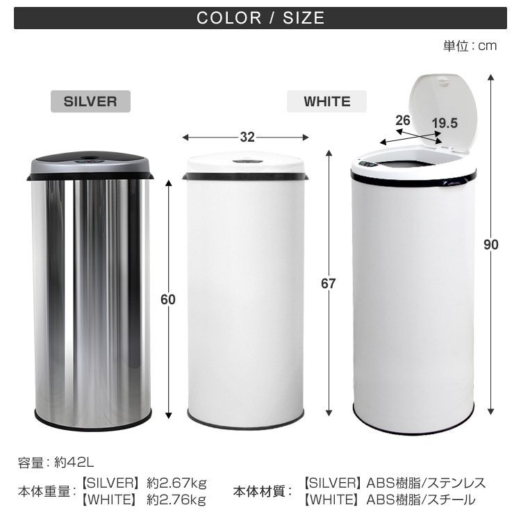 とっても便利! センサーでフタが自動開閉! 手をかざすとセンサーが感知してフタが開きます。 直接手を触れずに開けられるので、とっても衛生的です! 台所はもちろんのこと、赤ちゃんのおむつ捨て、医療の現場にもぴったりです! 手動で開閉OK! 操作パネルには、センサーの他に手動で開けたり閉じたりできるするボタンが付いています。 大容量な42Lタイプでシンプルなデザイン。 キッチンやリビングなどに置いてもマッチしやすいです。 【商品仕様】 内容:本体 ×1 カラー:シルバー/ホワイト ※ご落札後のオーダーフォーム備考欄よりご希望のカラーをご連絡ください。 ご記入がない場合、在庫切れの場合ランダム発送させていただく場合がございます。 容量:42L サイズ:(約)幅32cm×奥行き32cm×高さ67cm 重量:(約)2.7kg 使用電池:単三電池×4(別売) 素材:スチール、ステンレス、ABS 他 ※本商品には電池は付属しておりません。 ※紙のゴミ袋には対応しておりません。 ※商品は、モニターによって色合いが異なって見える場合があります。 ※仕様・デザインは改良のため予告なく変更することがあります。 【もちろん新品未使用品です】 ▼検索キーワード ゴミ箱 ごみ箱 ダストボックス ふた付き おしゃれ 分別 室内 スリム キッチン インテリア雑貨 北欧 リビング くずかご かわいい デザイン 生ごみ オムツ 見えない 収納 カウンター コンパクト 人気 おすすめ |