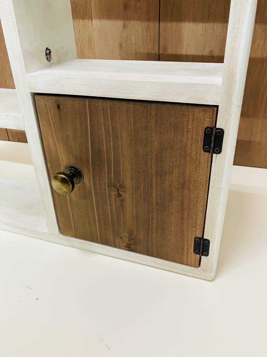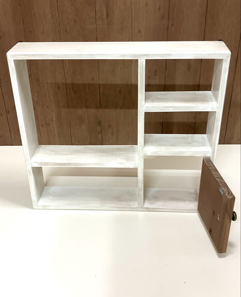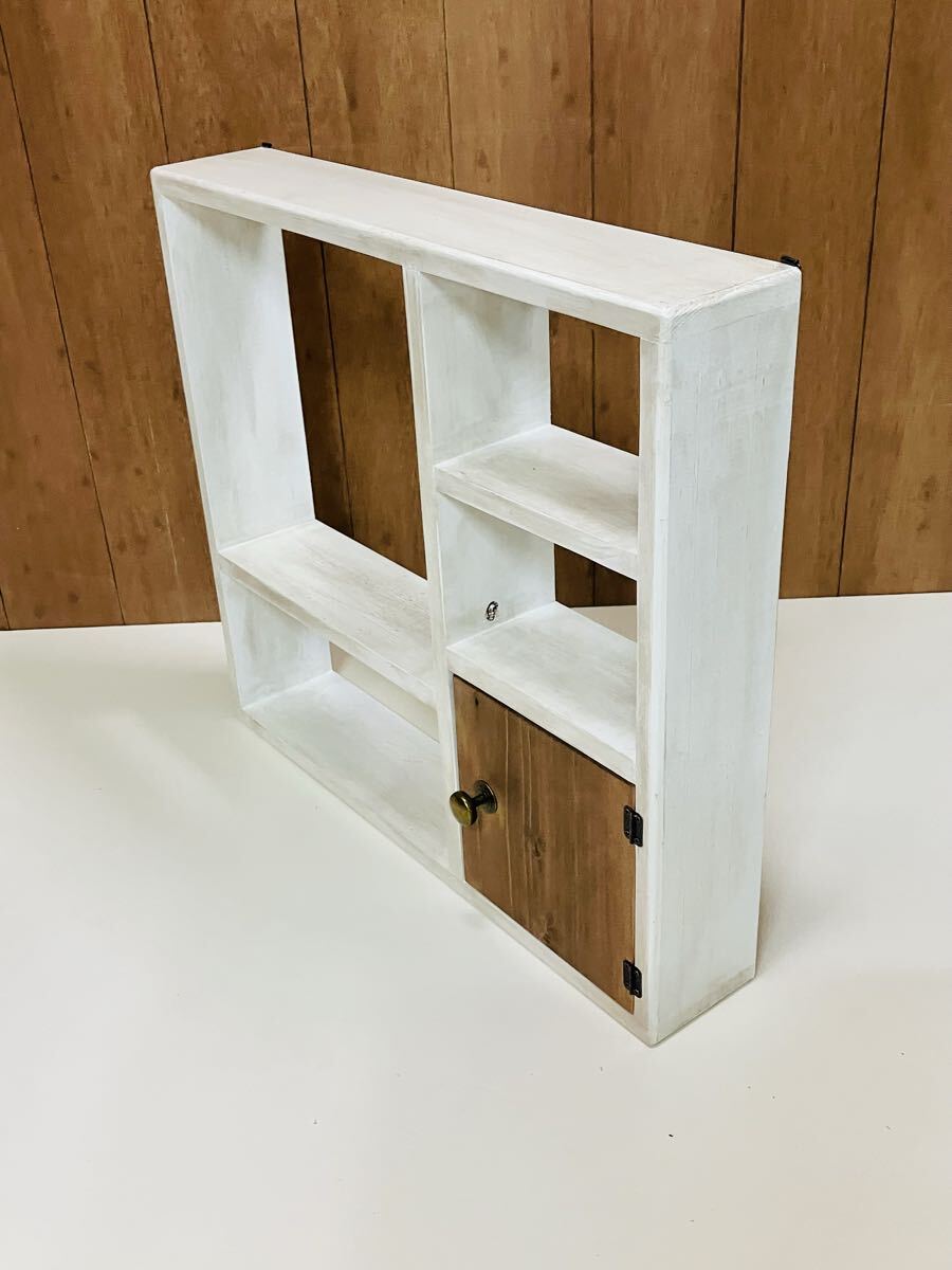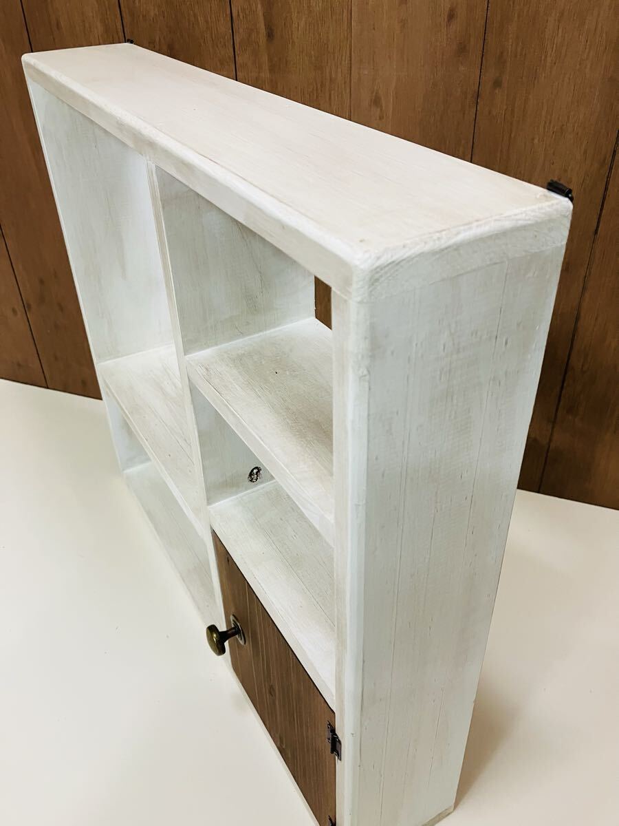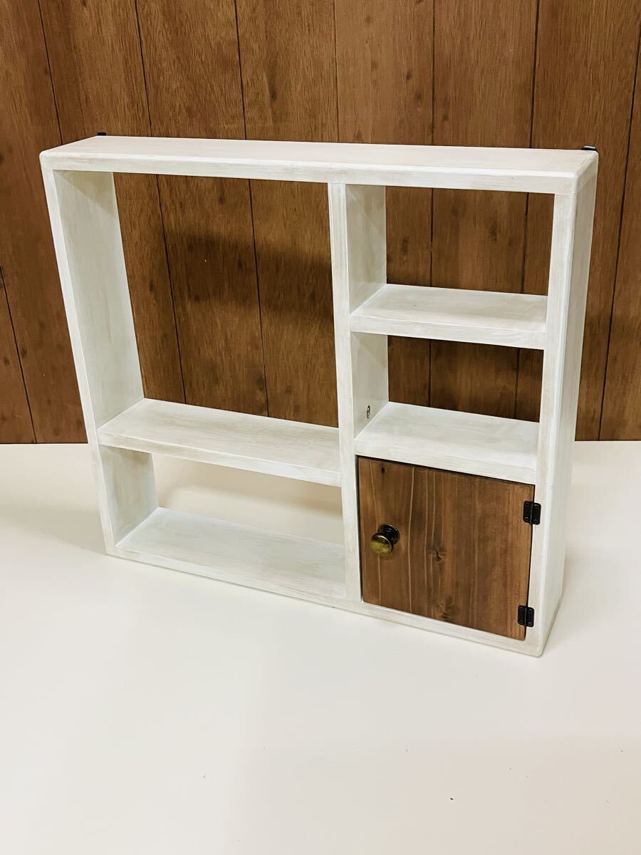 【Size:サイズ】 約500×90×450㎜ (幅x奥行x高さ) 各棚部分サイズ: 有効内寸:幅x奥行x高さ A/約285x90x173㎜ B/約285x90x130㎜ C/約170x90x108㎜ D/約170x90x108㎜ E/約170x90x170㎜ ・壁掛け用の金具(三角吊かん)付 ※背面板はついておりません。 【Material:素材】 材質:木(桧・杉)、金属、樹脂 塗装仕上げ※アンティーク調仕上げ(ホワイト・ウォルナット) 【商品説明】 手作りにこだわった木製シェルフです。 キッチンのストッカー、トイレや玄関の小物置きなどインテリア性抜群の木製棚ですです。 木工職人がサイズにこだわり一台一台丁寧に製作しインテリアとしての特別な空間を提供いたします。 素材は桧(ひのき)と杉を使用しており、カラーはホワイトをベースにアクセントでウォルナットの扉をセットしました。ホワイト部分もアンティーク調仕上げにしております。 手作りの温かみを感じながら、お手入れも簡単にできるので、長くご愛用いただけます。 天然木、塗装仕上げなので時間が経過するにつれ風合いが出ます。 サイズ、カラーが設置場所とマッチしご希望に合いましたら是非♪ 【ハンドメイド・ワンオフについて】 素材に天然木、鋼材、特殊素材を使用しておりますので材料の性質上、節・小傷、色むら、色あせ、錆が入る場合がございます。 また商品によって特殊な加工、形状にする際に小傷が付く場合がございます。 エイジング加工(さび加工)やハケ塗りハケ跡を残す場合がございますが 上記記載内容全て使用上に問題の無い商品の特徴、仕様としてご理解下さいませ。 | |||