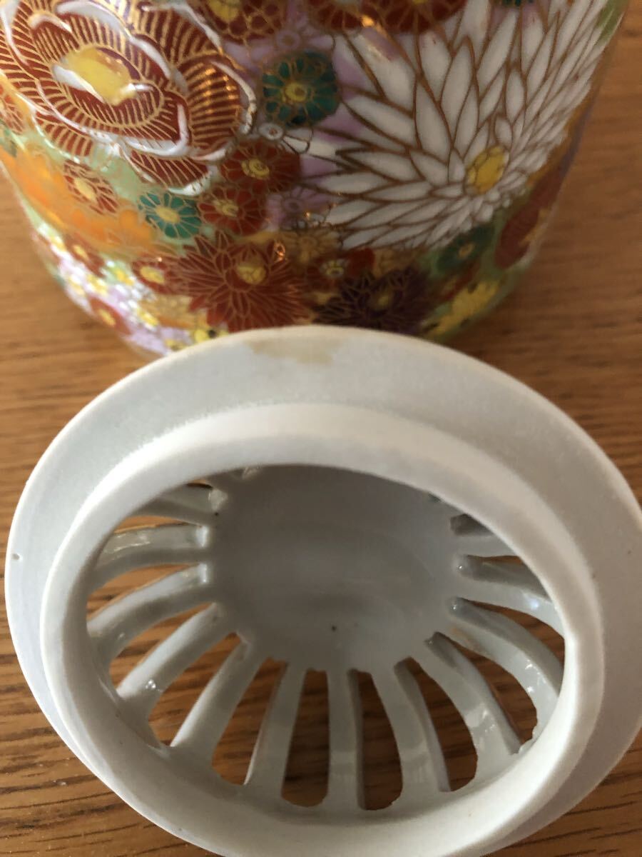実家の不用品でした。画像でははっきり写せなかったのですがキズや蓋の裏や本体のふち、底の裏側に茶色い汚れがあります。中に粉が残っています。