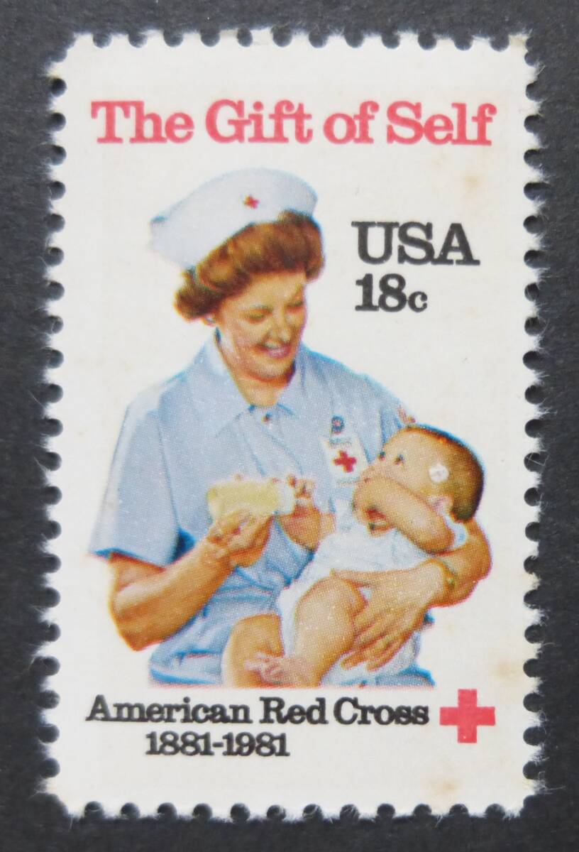 アメリカで、 1981年に発行された、 赤十字社 100年記念 切手です。