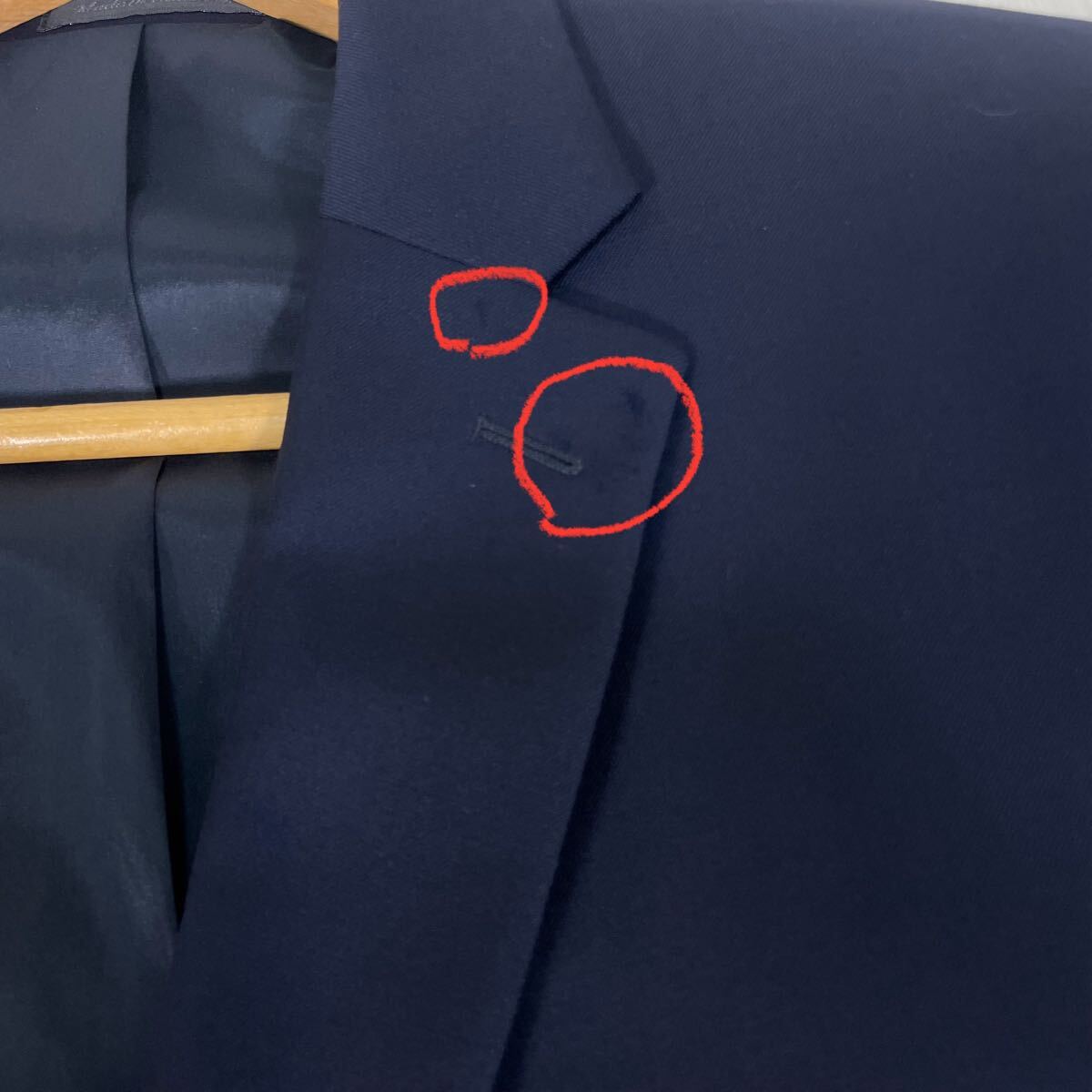 未使用品ではございますが、襟部分のシミと小さな浅い傷が各所に見られます。