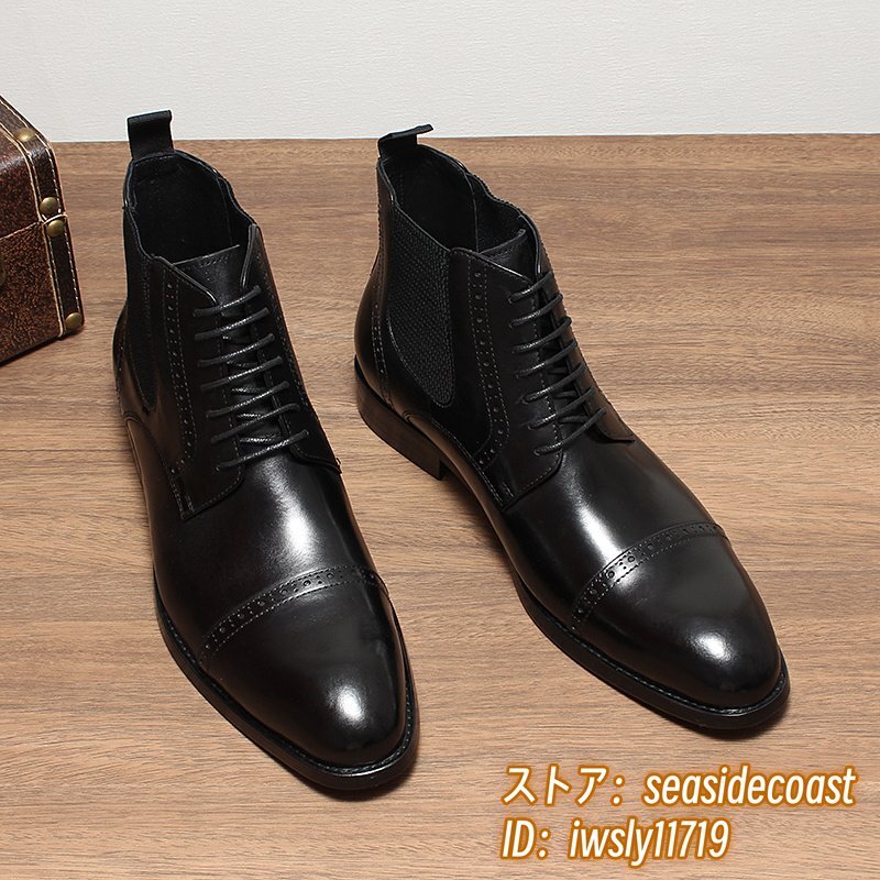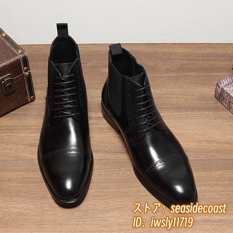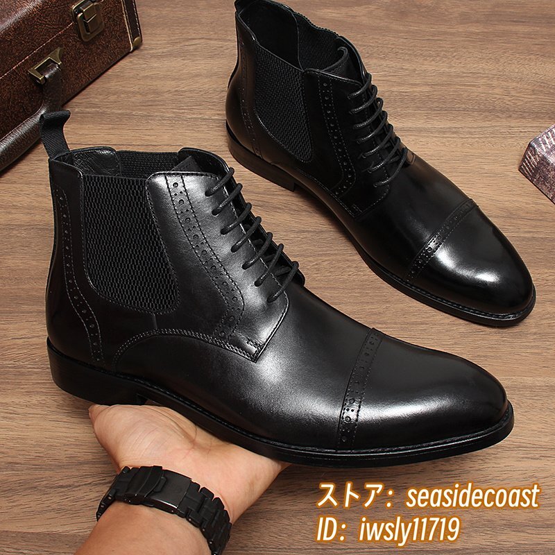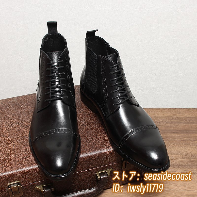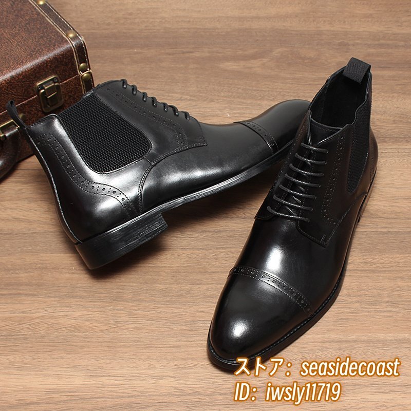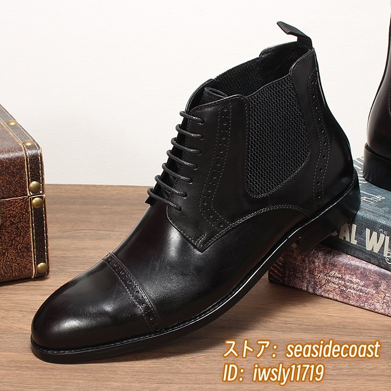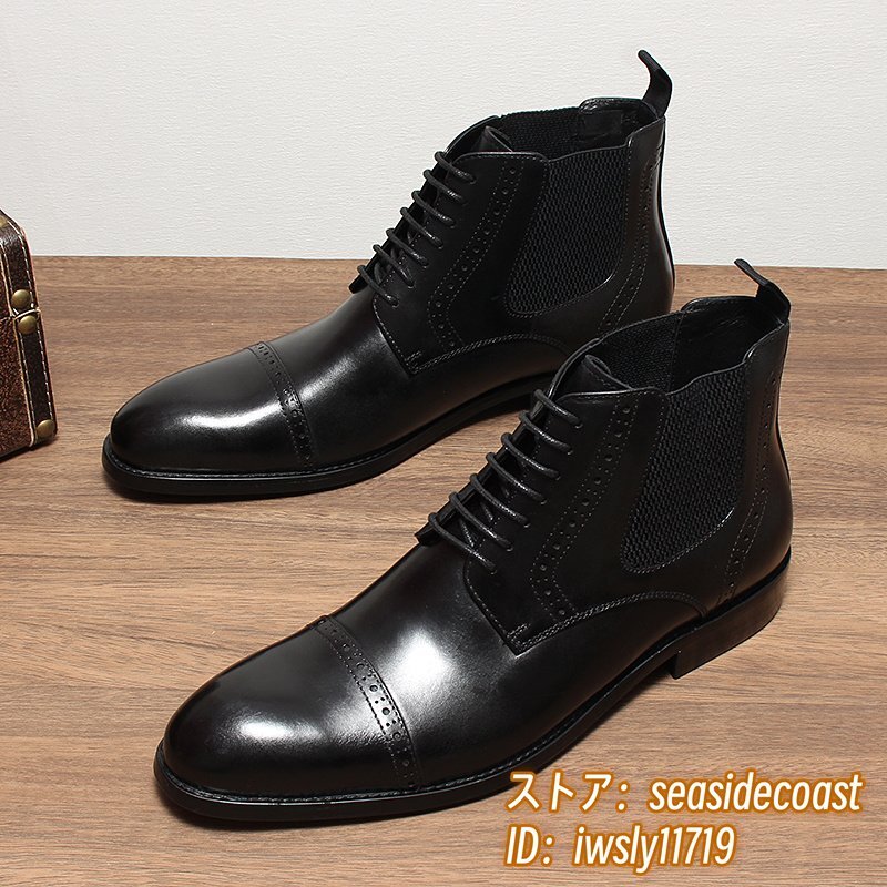 極美品◆マーティンブーツ メンズブーツ 本革 レザーブーツ イギリス風 皮靴 ハイカット ショートブーツ フォーマル 新品 ブラック 24.5cm