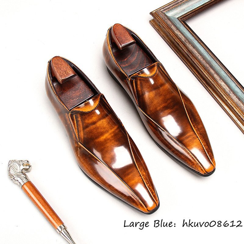 超希少■正規品 光沢感 スリッポン ローファー 本革 職人手作り ビジネスシューズ 高級牛革 レザーシューズ 紳士靴 革靴 ブラウン 25.0cm
