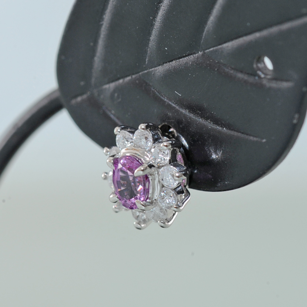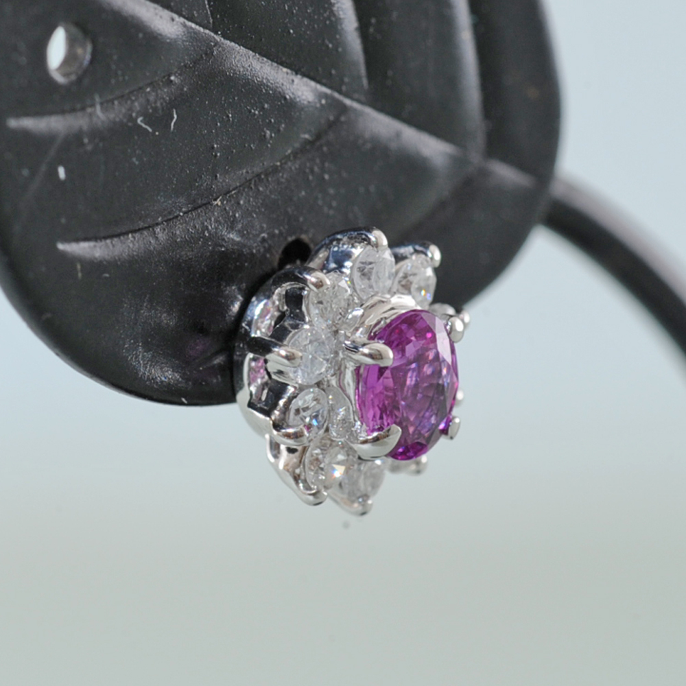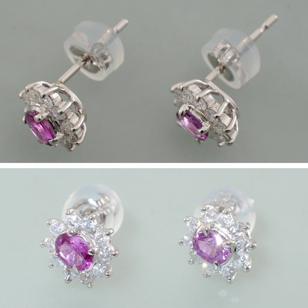 ● 材質:プラチナ850、天然ピンクサファイア(オーバルミックスカット)、メレダイヤモンド(ラウンドカット)、(ウレタンキャッチ)プラチナ900