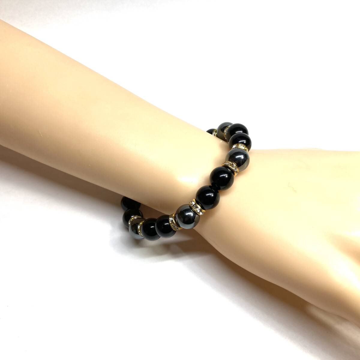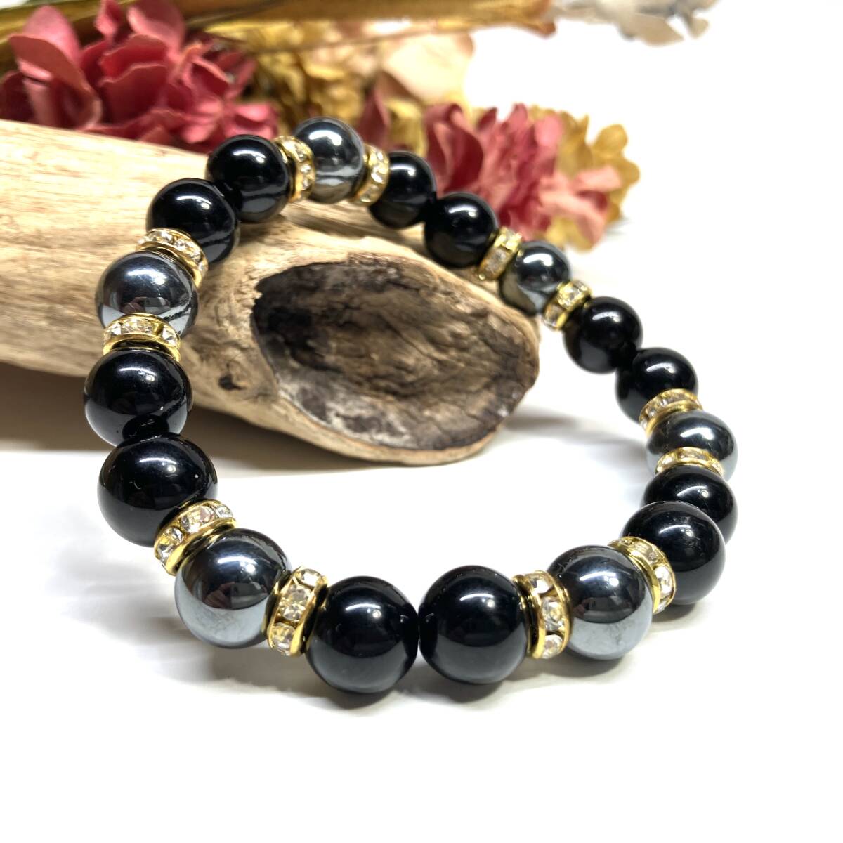 こちらは、モリオンとヘマタイトを組み合わせたパワーストーンブレスレットです。間にはロンデルを挟み高級感あるデザインに仕上げております。石大きさは腕にも馴染みやすいように10mm玉で内径約18cm(伸可能)です。(サイズ変更の場合は取引ナビにてご連絡をお願いします。) 数に限りがございますので気になる方はお早めにどうぞ。