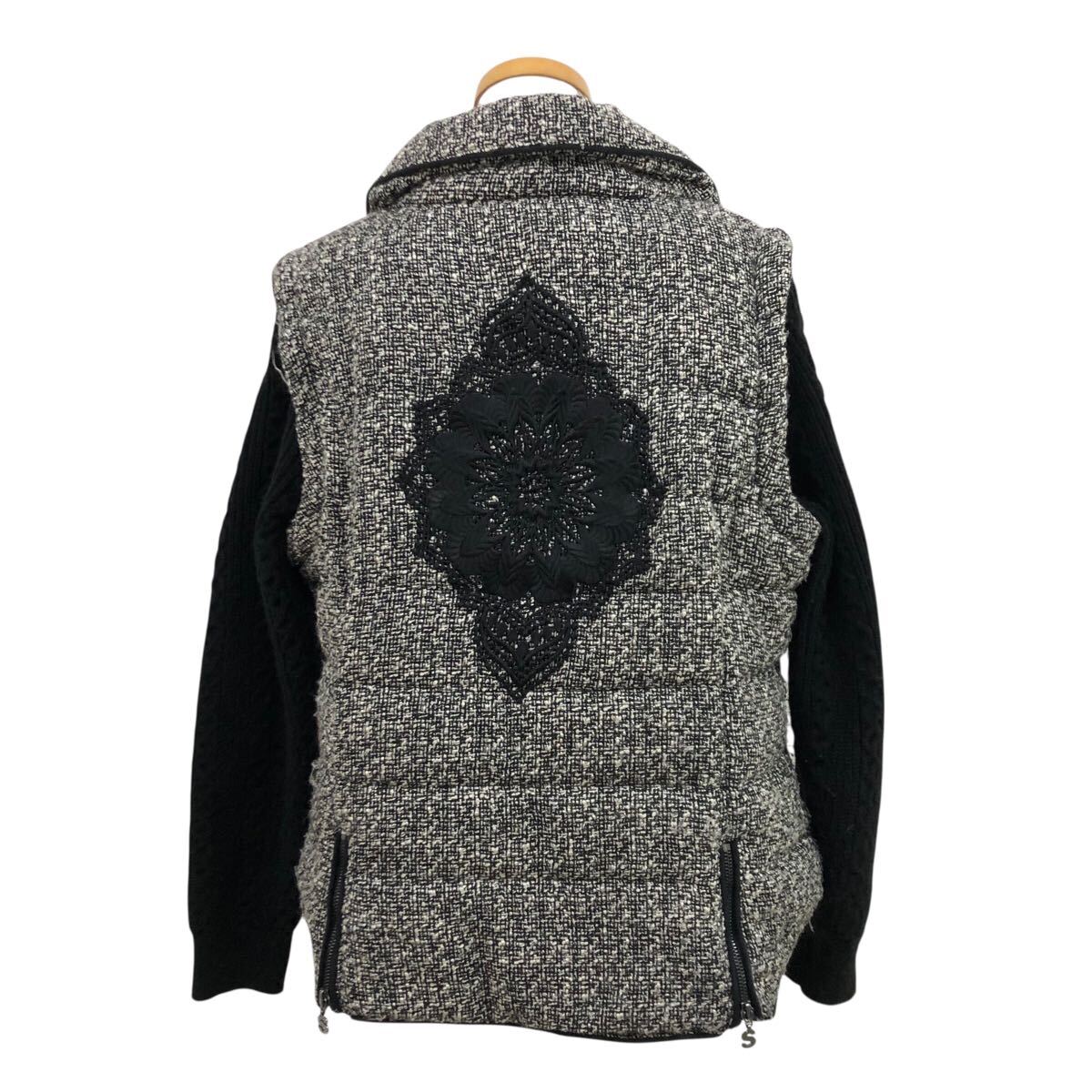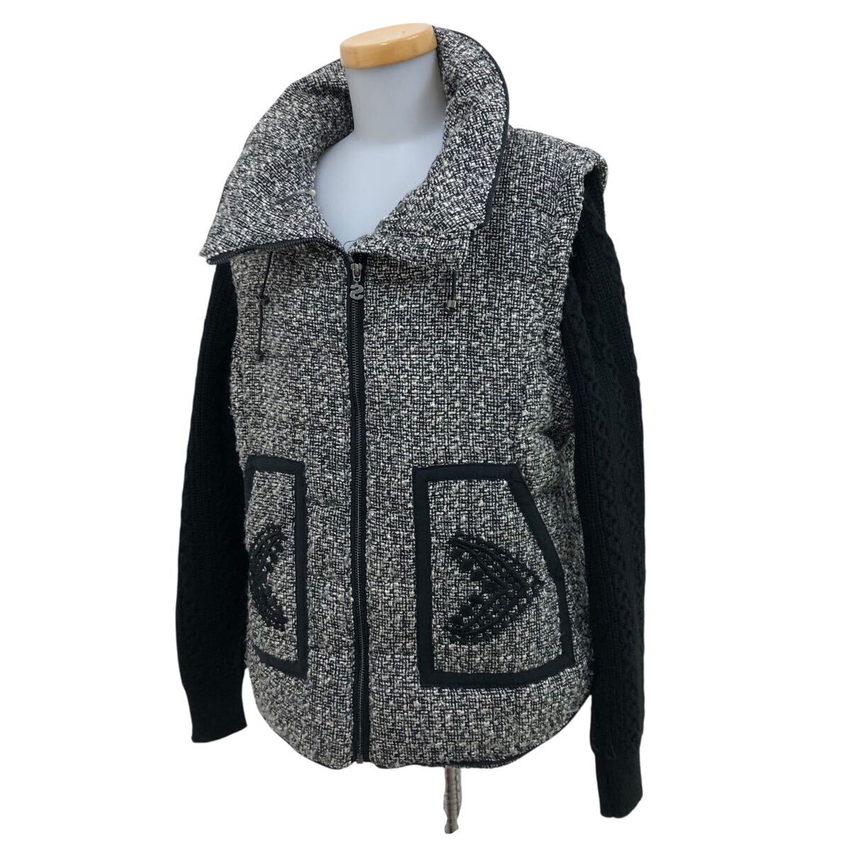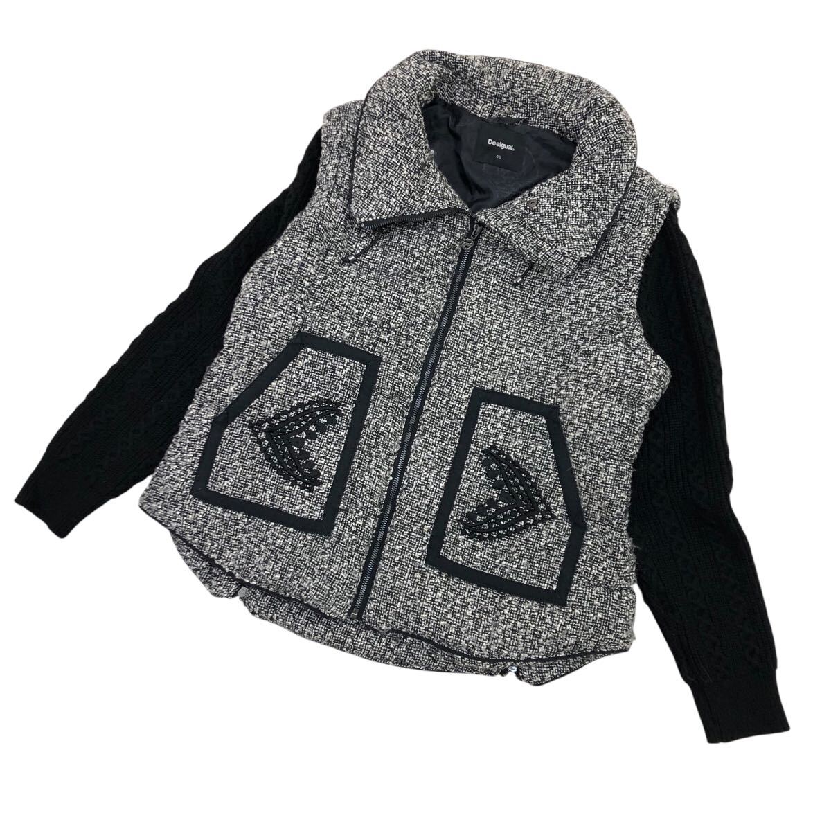 10K340-19 Desigual デシグアル 中綿 ジップ ジャケット 上着 羽織り アウター ニット 切り替え 黒 グレー系 レディース 女性用 46