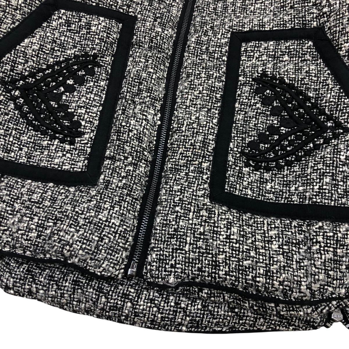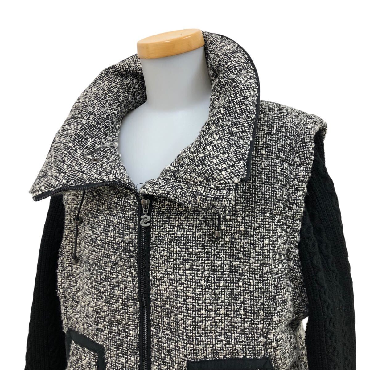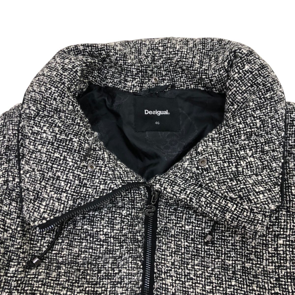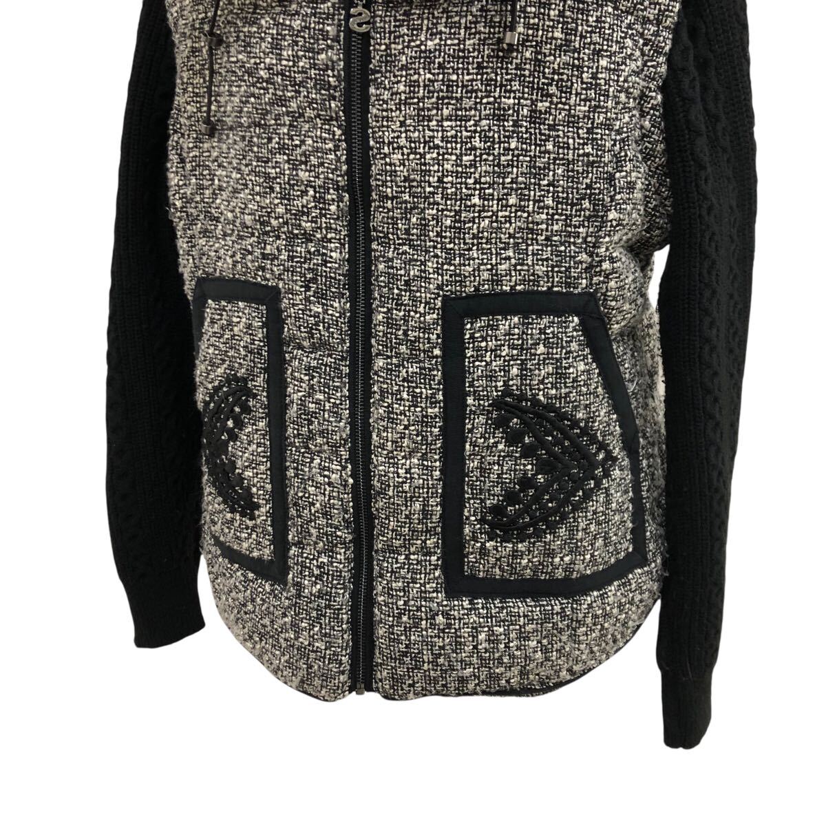 10K340-19 Desigual デシグアル 中綿 ジップ ジャケット 上着 羽織り アウター ニット 切り替え 黒 グレー系 レディース 女性用 46