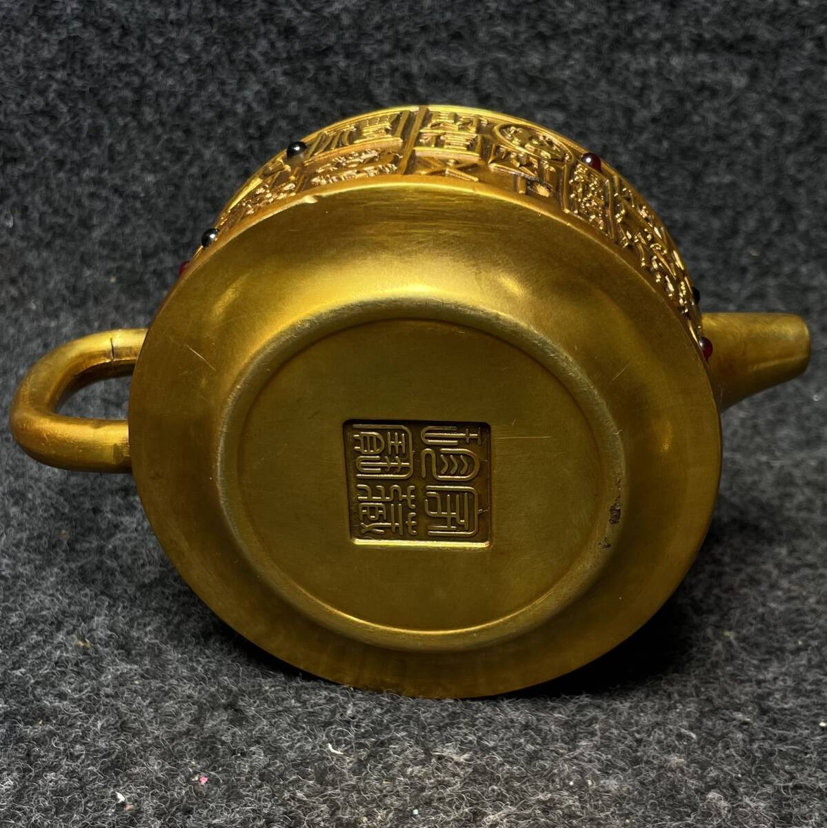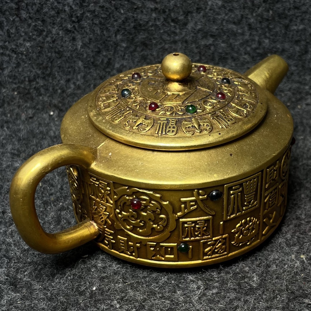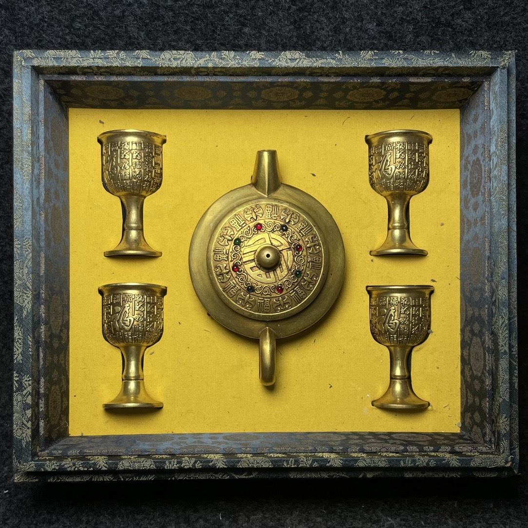 【超珍館蔵】 銅製細作 塗金 寶石嵌 百福紋 酒具一套 擺件 箱付 置物 賞物 古賞物 古董品 古美術品 時代物 旧家蔵出 稀少珍蔵品