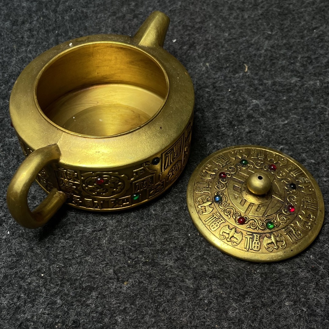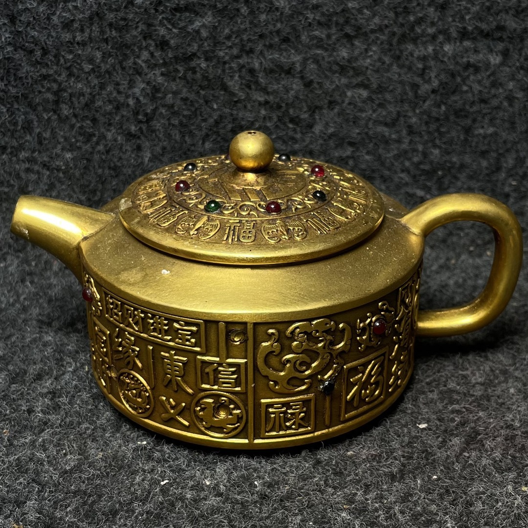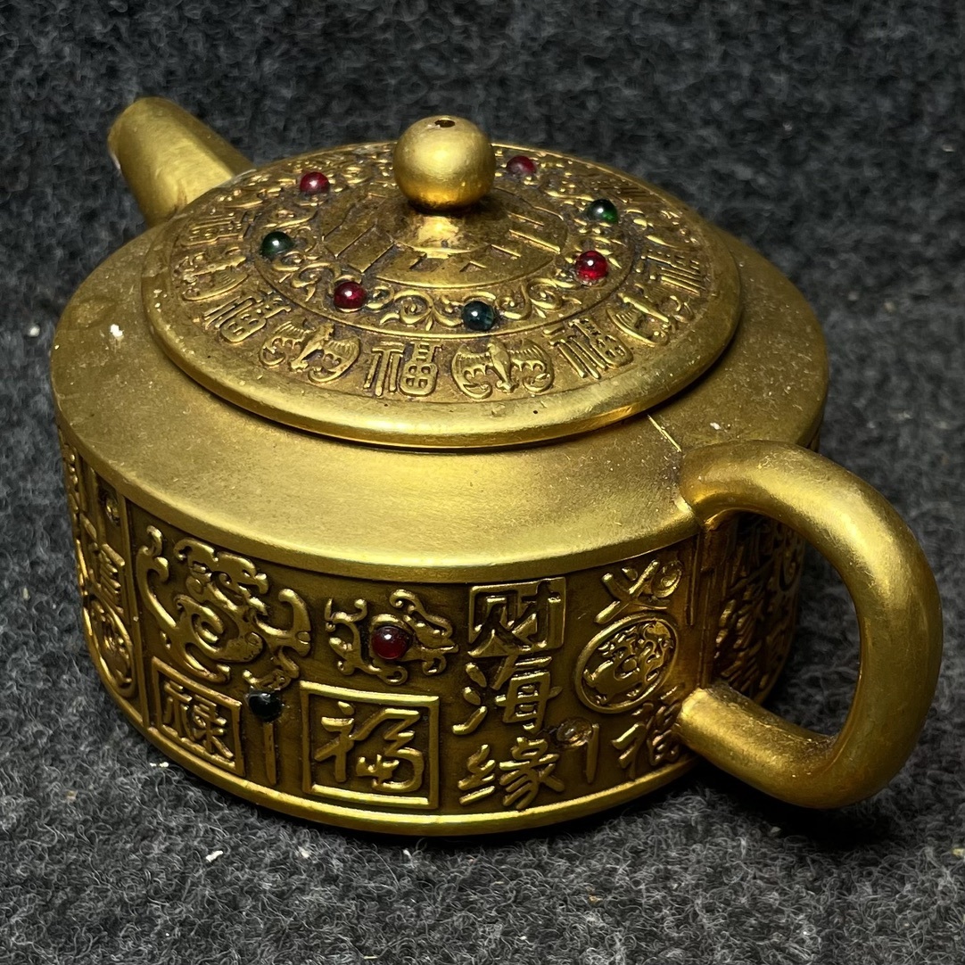 【超珍館蔵】 銅製細作 塗金 寶石嵌 百福紋 酒具一套 擺件 箱付 置物 賞物 古賞物 古董品 古美術品 時代物 旧家蔵出 稀少珍蔵品