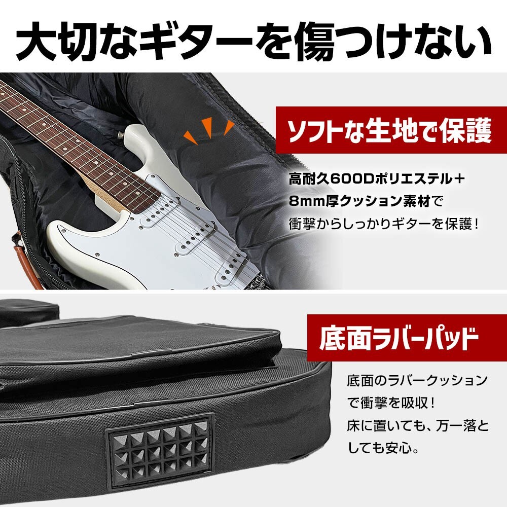 ギターケース エレキギター ソフトケース ギグバッグ 軽量 クッションパッド ギターバッグ 収納ポケット 持ち運び ポケット おしゃれ
