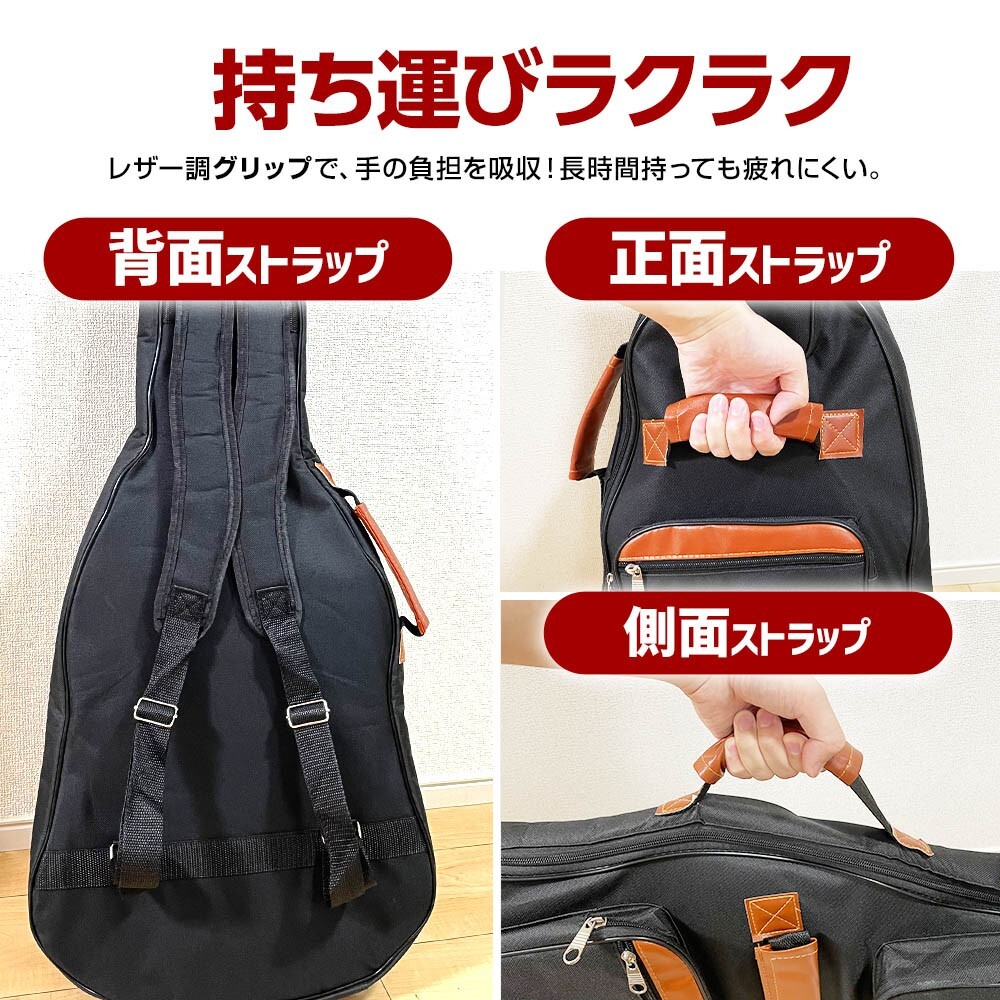 耐久性に優れた600Dポリエステル素材を使用し、シンプルかつ洗練されたデザイン。どんなシーンでも映える、オシャレなギターケースです!