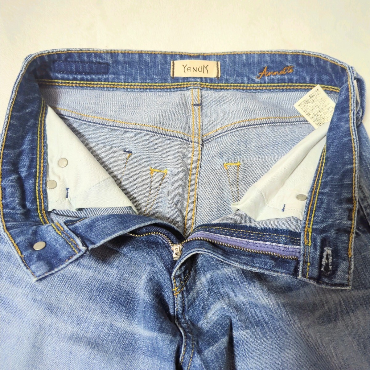 メリハリのついたスリの強弱が、脚をきれいに見せてくれる最大のポイントで色もきれいなブルー色で年間通して使える1本でYANUKの代名詞的のデニムになります。
