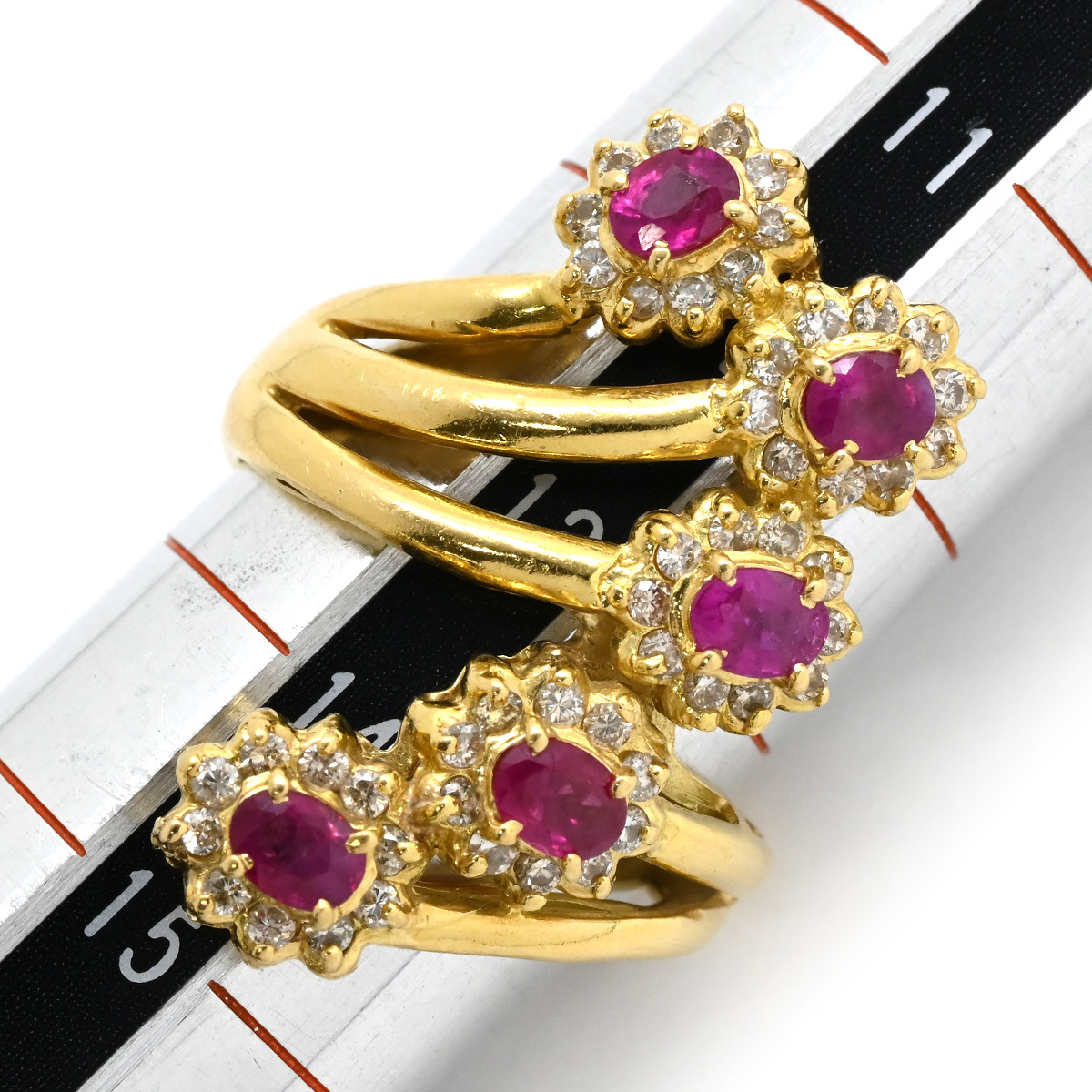 ノンブランド NON BRAND リング 指輪 K18YG ルビー ダイヤモンド イエローゴールドAu750 18K 18金 レッド 赤 - 13号 レディース 中古 | |