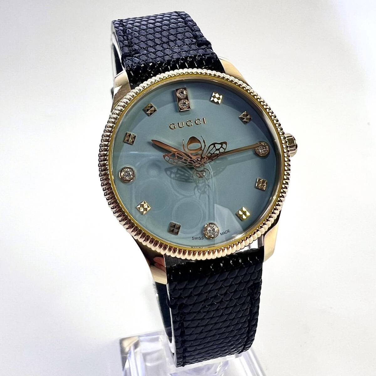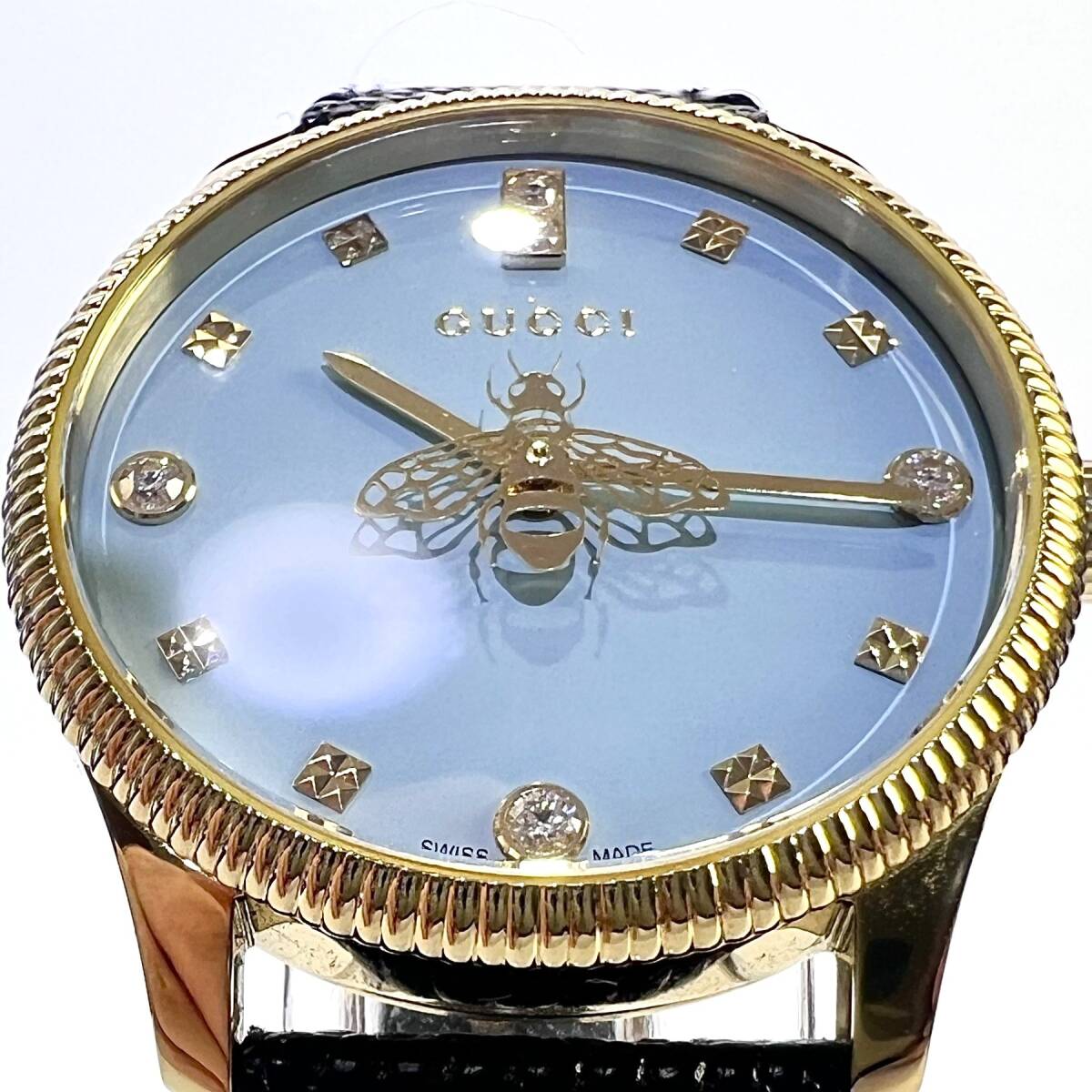 商品名:Gタイムレス 5P ダイヤ 蜂モチーフ レディース クオーツ 青文字盤 腕時計 126.5/18169875
