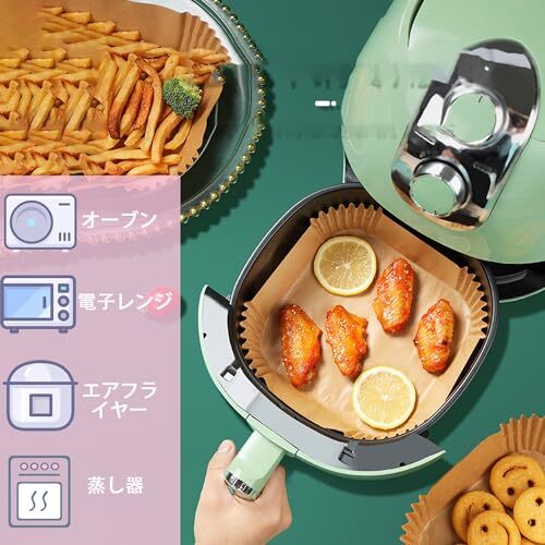【商品サイズ】16×16×4.5cm、100枚入り。プラスチックシェルパッケージにより、その後の保管が容易になります。 3〜5リットルのエアクッカーに適しています(3リットルを超えない場合は、容器の形状に合わせて紙を折りたたむことができます)。 最高使用温度:230℃。 材質:食品グレードのシリコーンオイルコーティング。