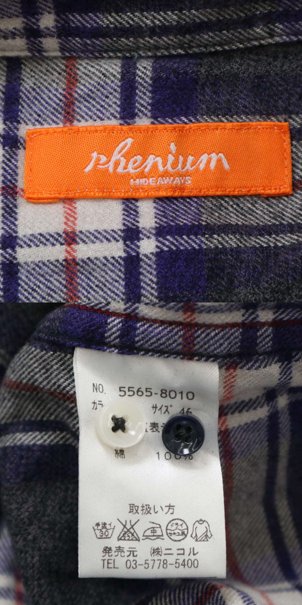 rhenium HIDEAWAYS NICOLE ハイダウェイ ニコル 秋冬★ 長袖 タータン チェック フランネル シャツ Sz.46 メンズ