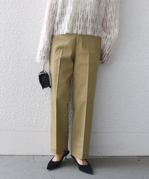 キーワード:チノパン レディース スタンダード ストレート センタープレス ハイウエスト フルレングス 無地