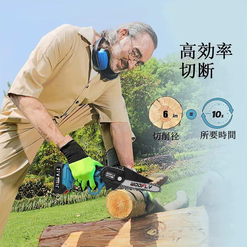 • 【便利性&幅広い用途】 従来のエンジン式チェーンソー、コード付きの電動チェーンソー、あるいは手のこぎりと比べて、21Vミニコードレスチェーンソーは軽くて持ち運び便利の上に、素速いチェーンスピードで作業効率もうまく向上させられます!各種の花園、公園、農場、大型牧場、庭園の緑化、果樹園、温室、木材の切断、盆栽、樹木などに適用されます。