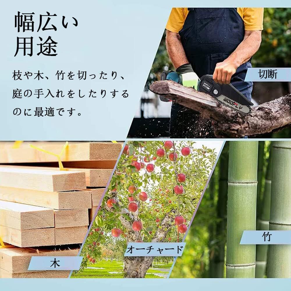 ミニ電動チェーンソー 充電式 6インチ 小型 21V ちぇーんそー ガイドバー150mm 強力2000mAhバッテリー搭載 軽量 木工切断 枝切り 薪作り