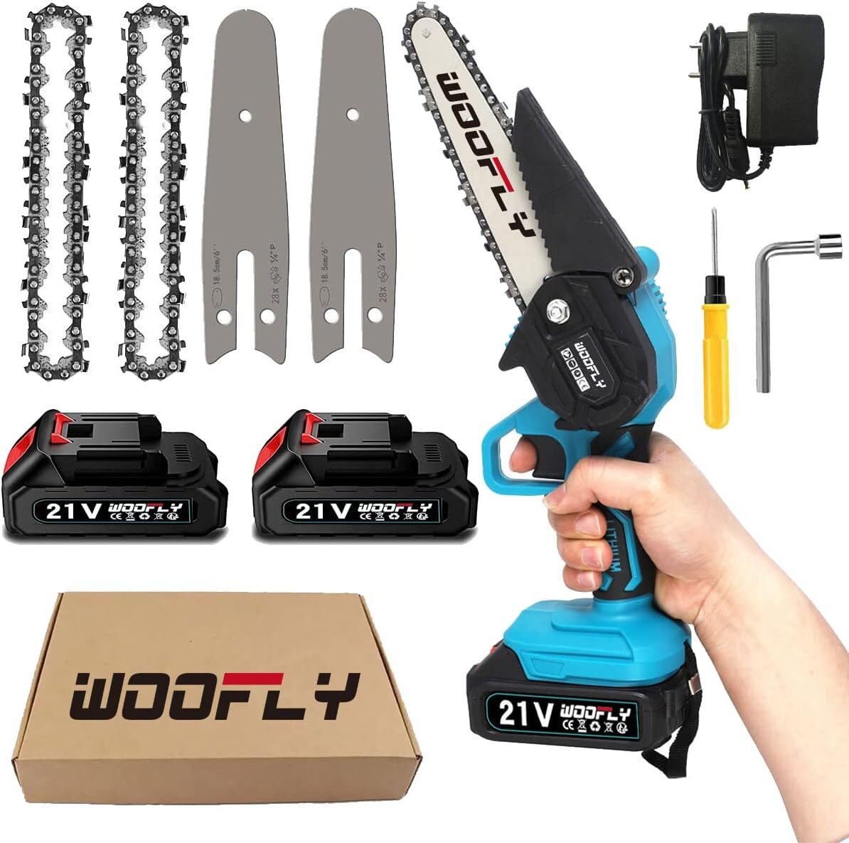 • 【予備のバッテリー、チェーン、ガイドバー】パッケージリスト:チェーンソー本体、電源アダプター、2000mAhバッテリーx2、チェーンx2、ガイドバーx2、インストールキット、日本語取扱説明書。