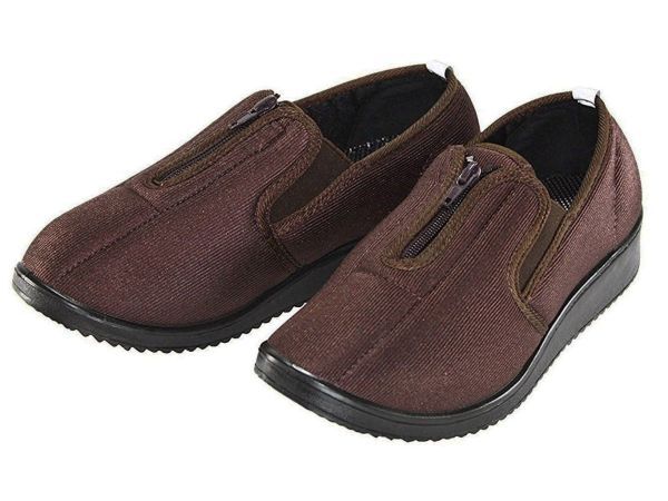 甲チャック (ファスナー) で脱着が簡単な 男女兼用 転倒予防シューズ。