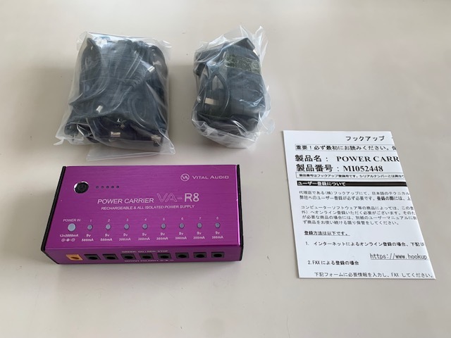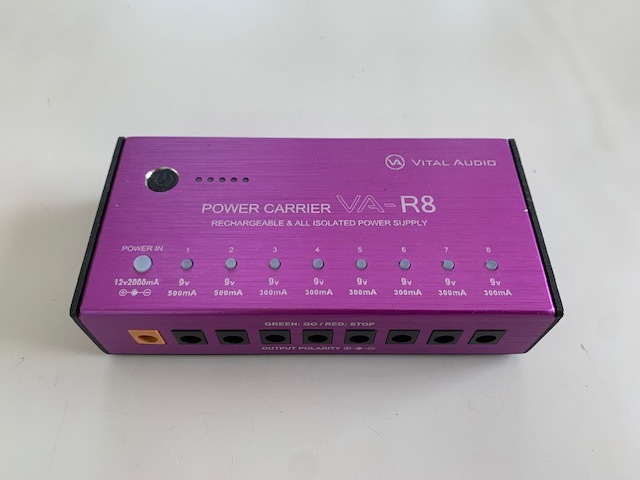 VITAL AUDIO VA-R8 充電式バッテリー内蔵パワーサプライです。新品にて購入、簡易的に使うエフェクターボードで使用してました。アダプターでの使用も可能ですが、充電しておけば電源のない所や簡易的に使う場合に重宝してました。機材整理のため出品します。落札後はノークレームノーリターンにて。送料無料!この他にも1円~商品を出品予定ですのでチェックしてみて下さいね。宜しくお願い致します。