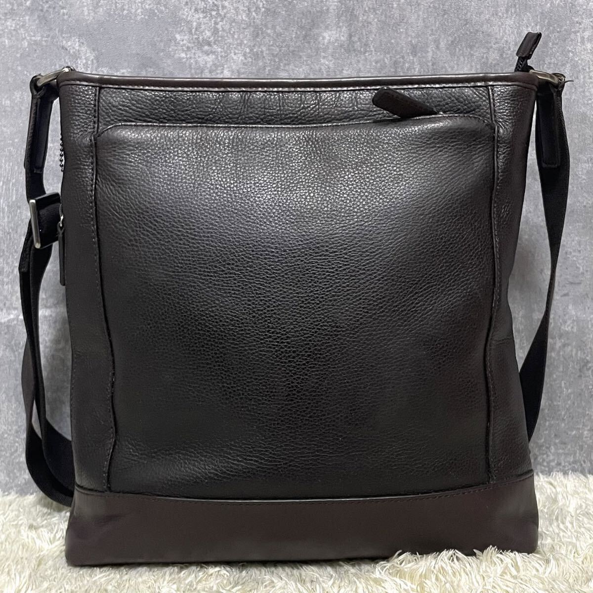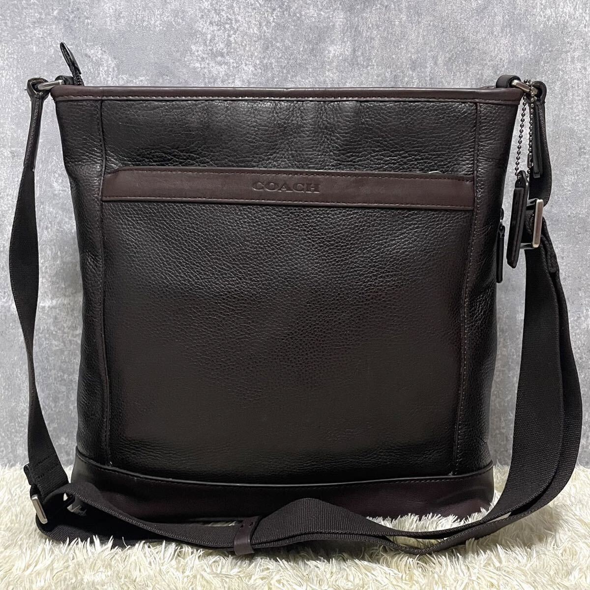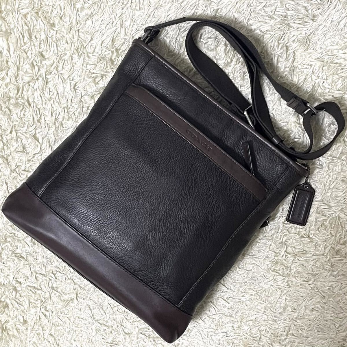1円〜 美品 コーチ coach メンズ ショルダーバッグ サコッシュ メッセンジャー レザー 本革 クロスボディ 斜め掛け ブラウン 茶 ロゴ型押し