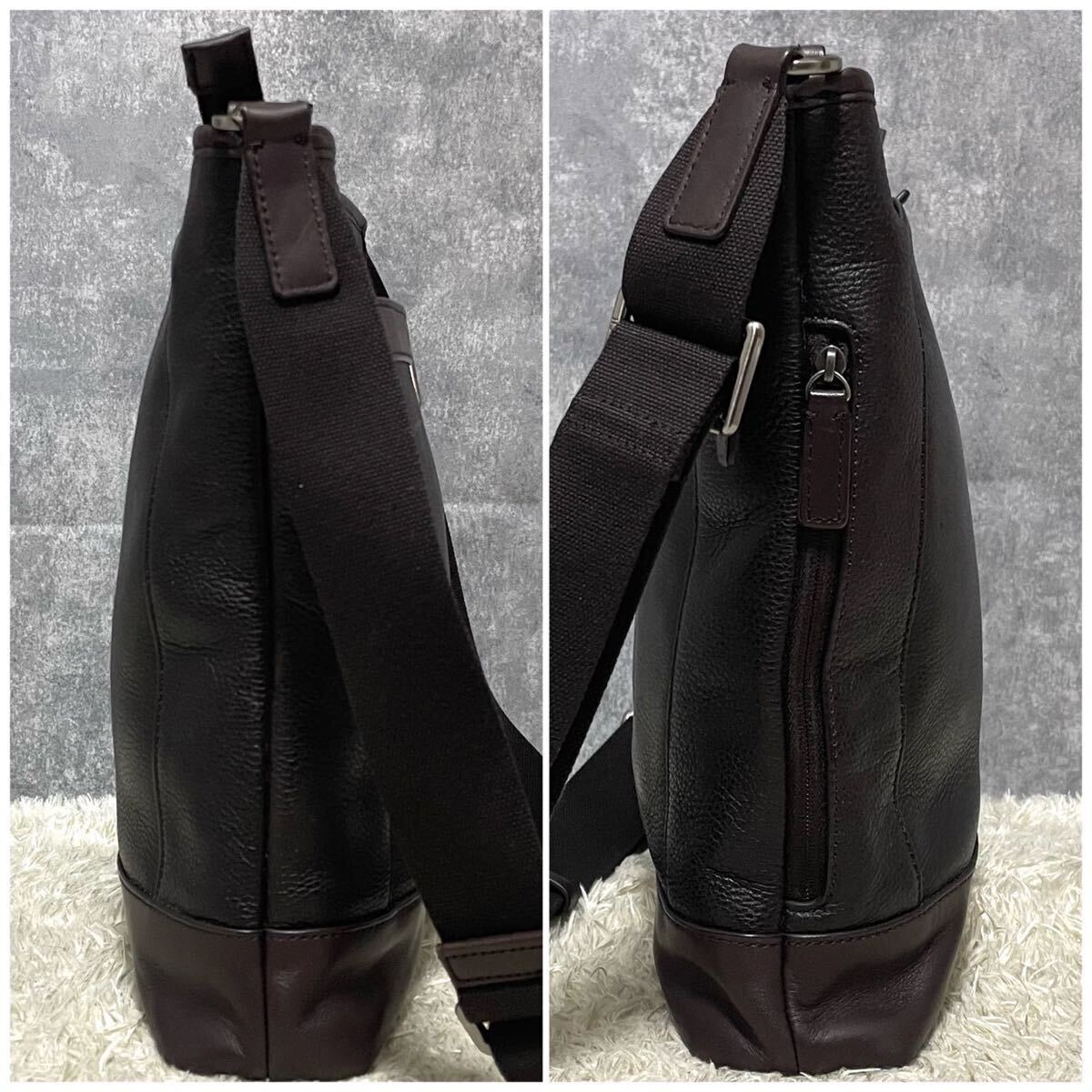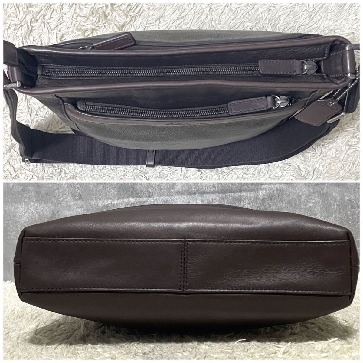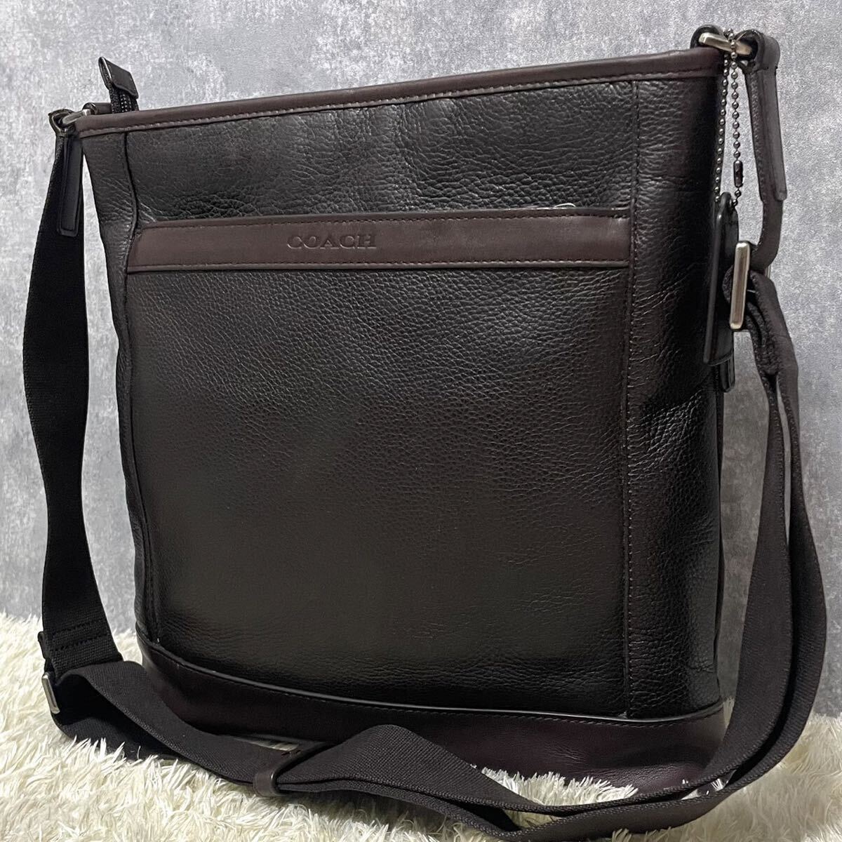 1円〜 美品 コーチ coach メンズ ショルダーバッグ サコッシュ メッセンジャー レザー 本革 クロスボディ 斜め掛け ブラウン 茶 ロゴ型押し