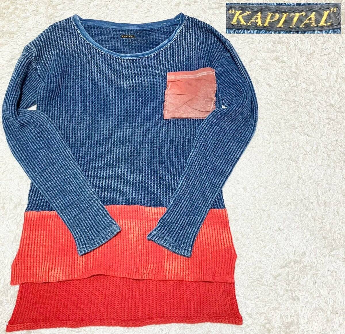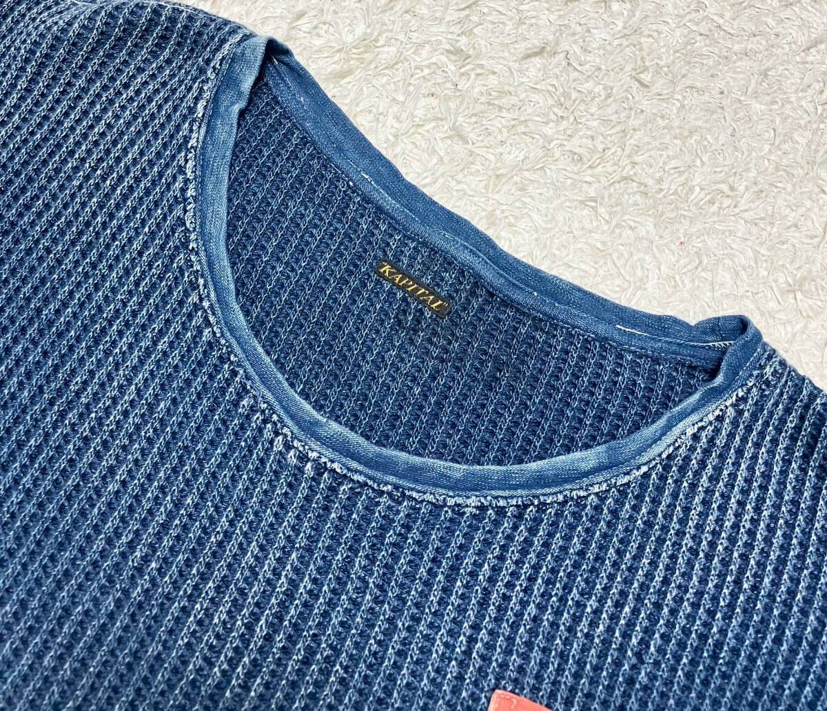 【インディゴ染め★】サイズ2 KAPITAL ワッフルニットセーター●エイジング加工☆キャピタル (9)