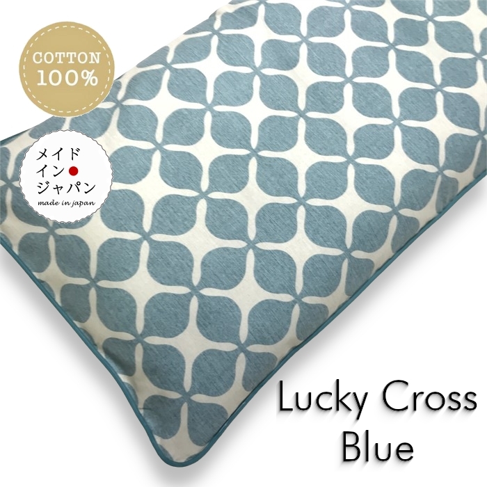 長座布団カバー ラッキークロス ブルー ざぶとんカバー 60×110cm 洋風おしゃれ ロング 綿100%