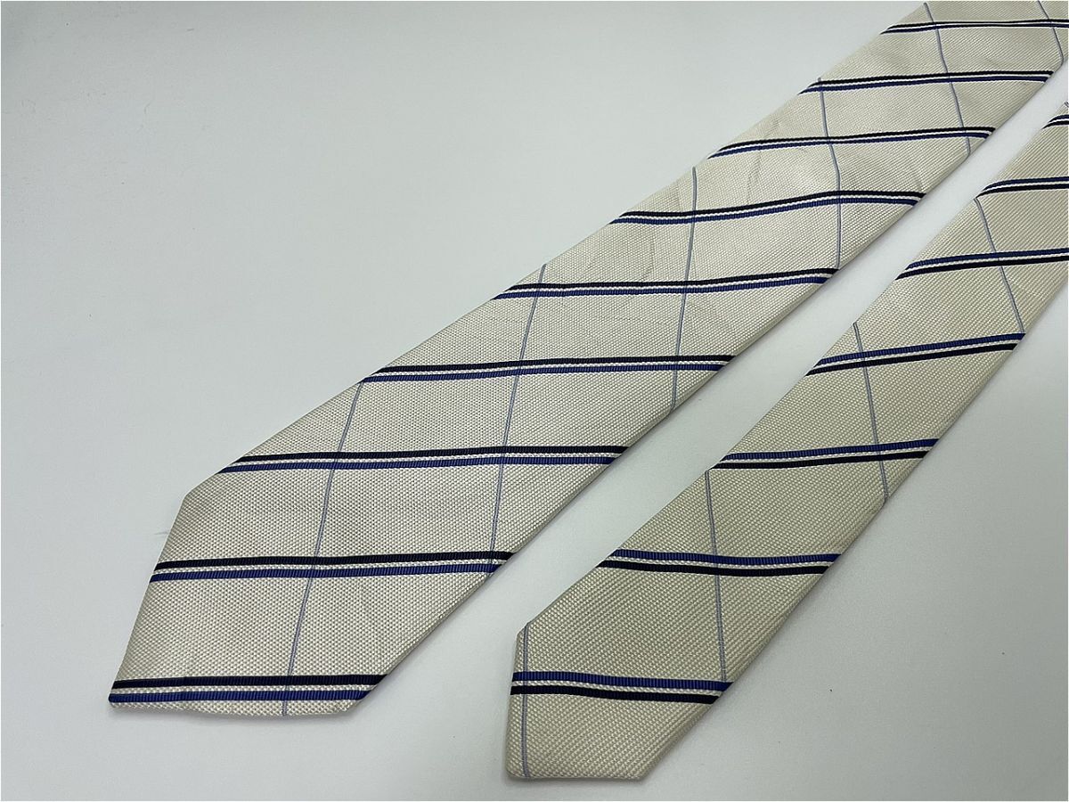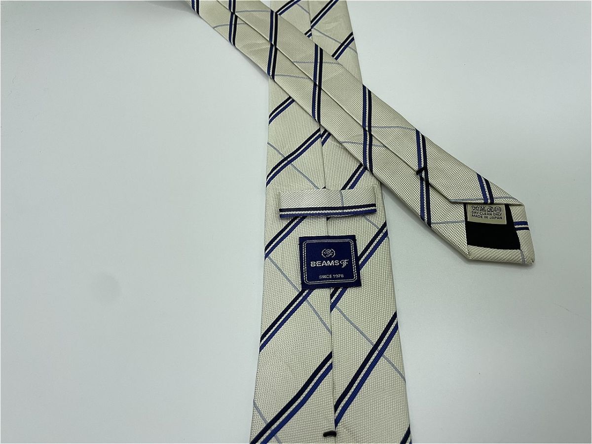 【美品】BEAMS ビームス チェック柄 ネクタイ 3本以上 送料無料 メンズ ホワイト 0901022