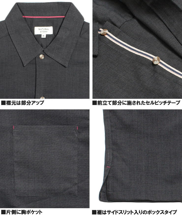 | 商品名 | 【新品】 2L グレー 半袖シャツ メンズ 大きいサイズ リネンライク 麻風 セルビッチテープ付き カジュアルシャツ |