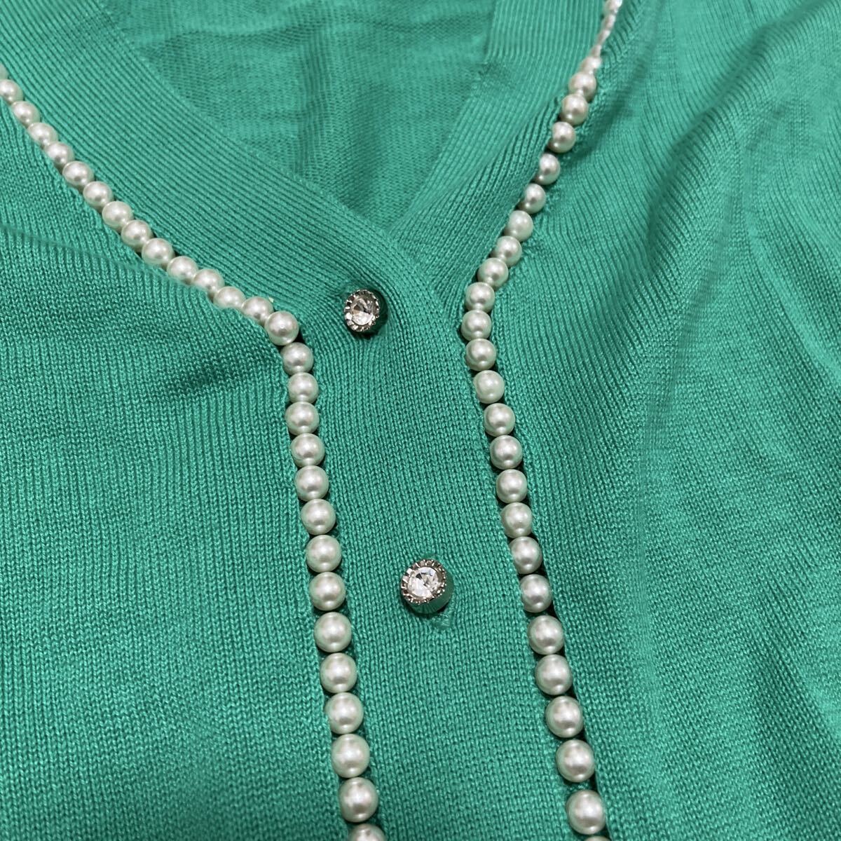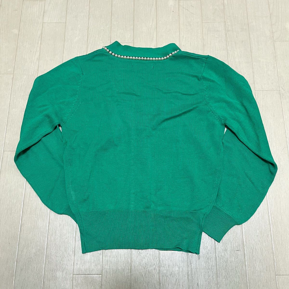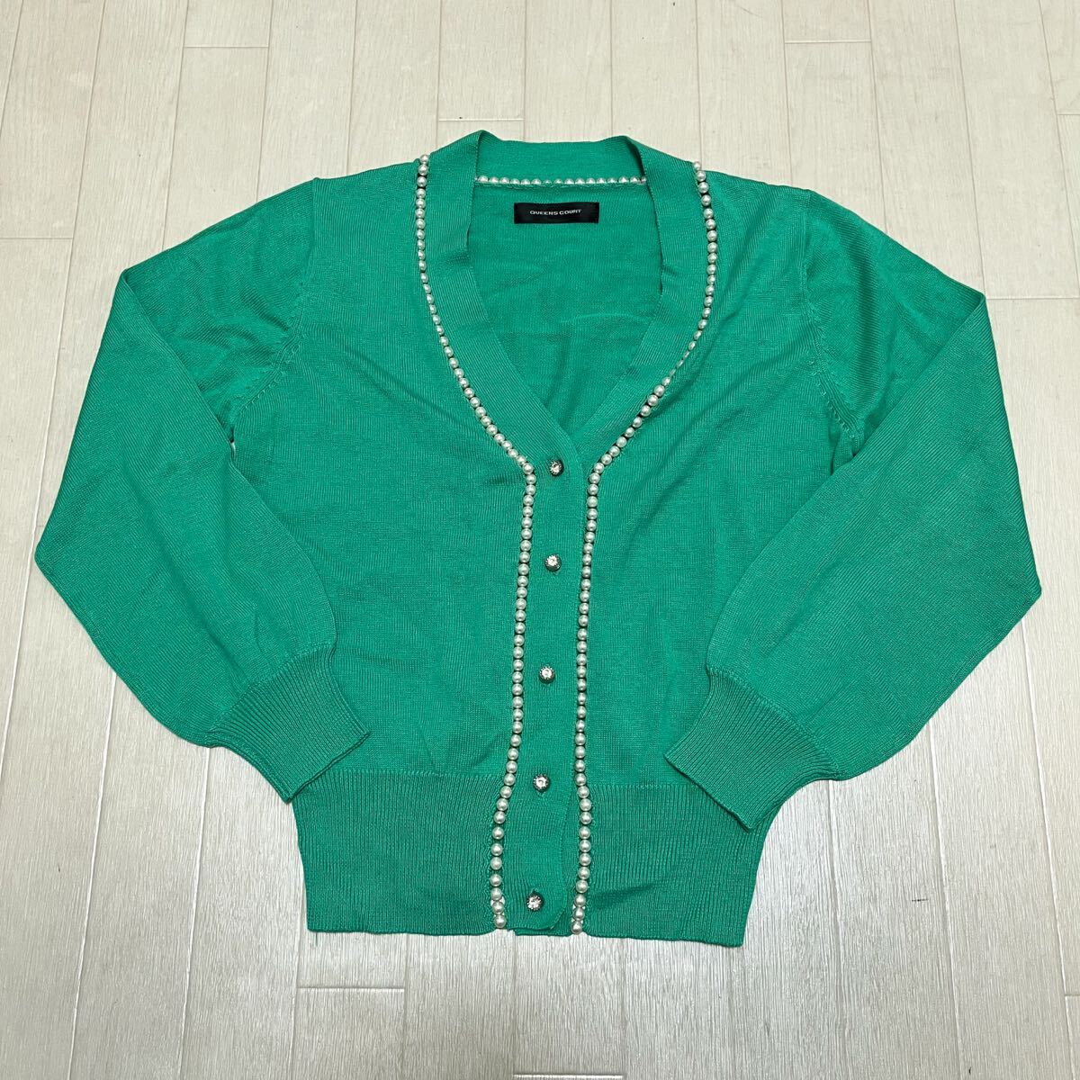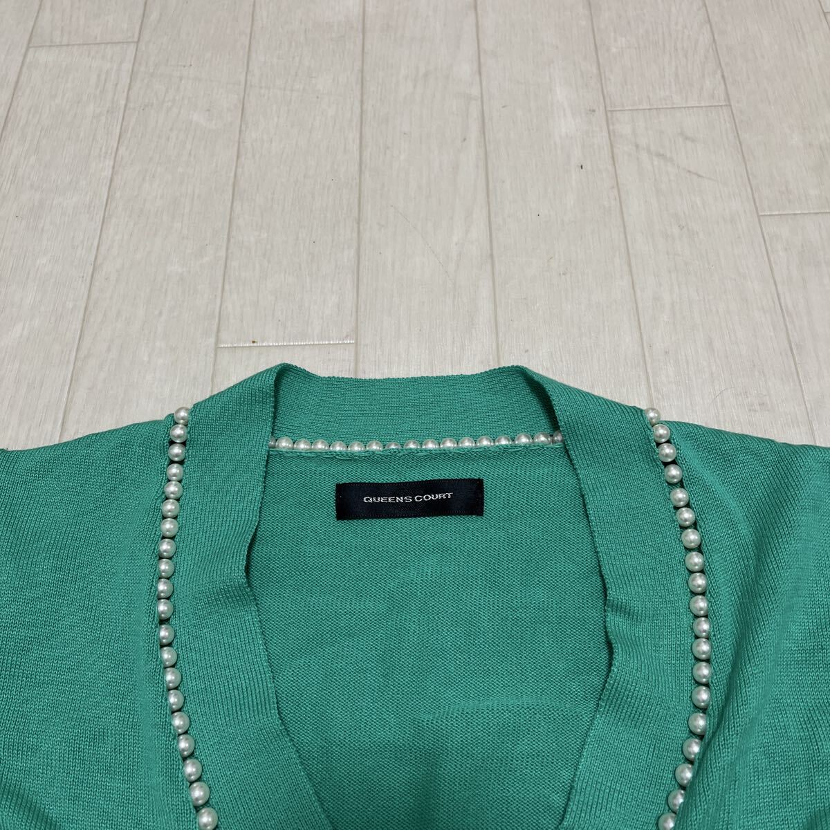 和851★① QUEENS COURT クイーンズコート ニット カーディガン 長袖 ビジュー 2 グリーン レディース