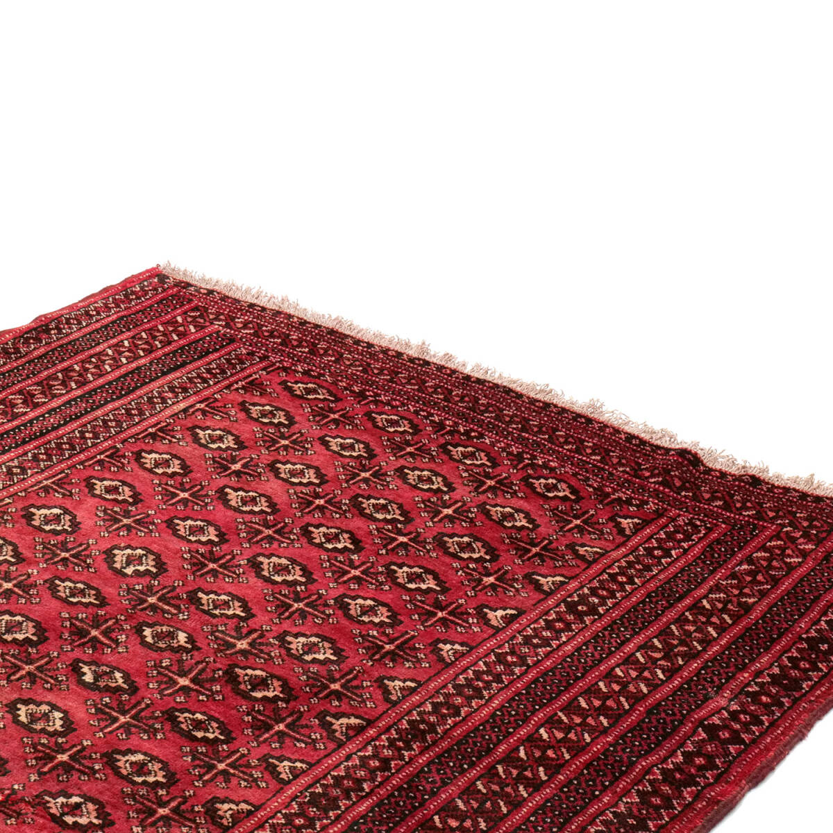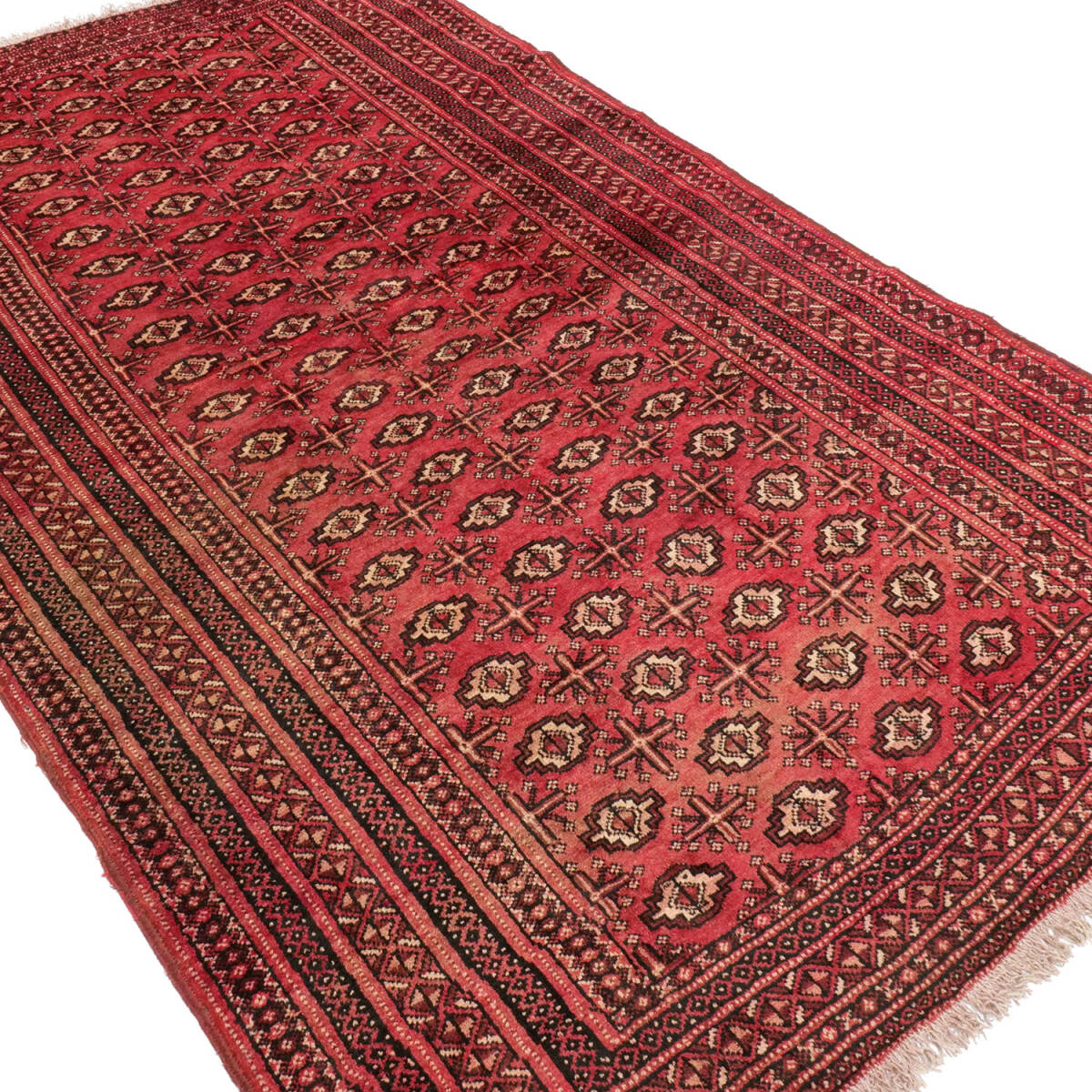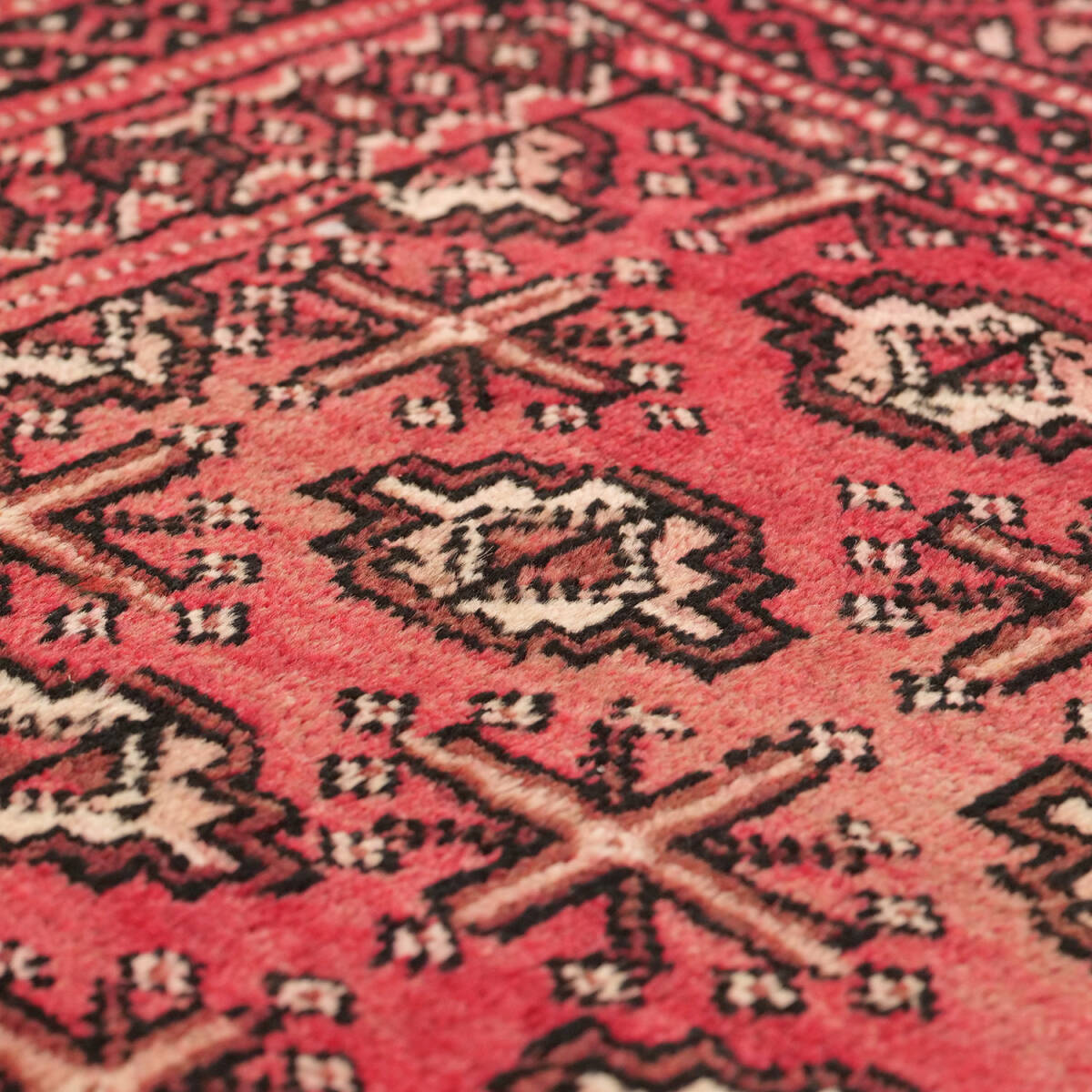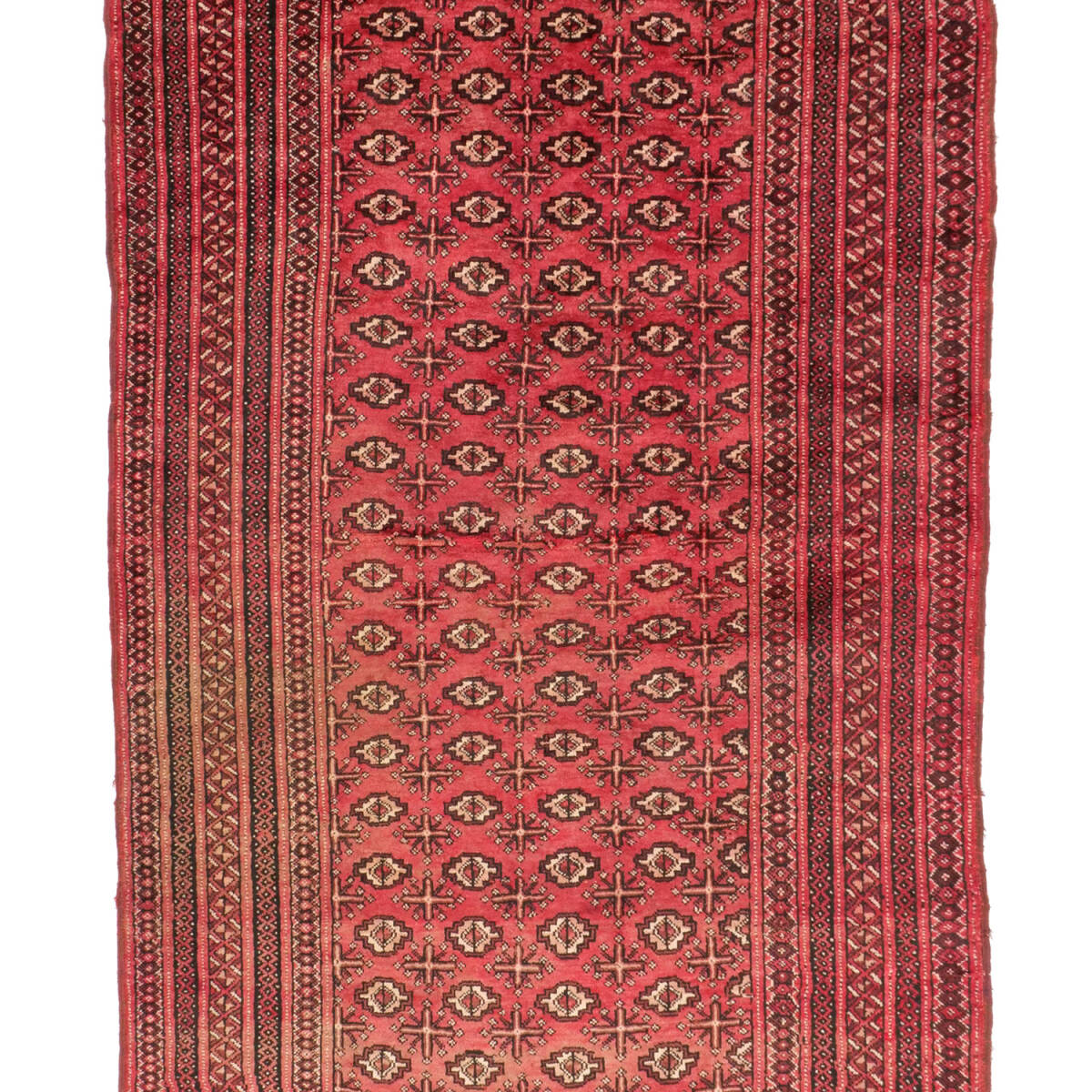1960年代にジョルゲロクで制作されたセミアンティークラグです。フィールドにはエルサリ族特有のエルサリギュルが整然と織り込まれており、部族間の意匠交流を感じさせる一枚となっています。伝統を受け継ぎつつも独自性を持った表現が魅力です。