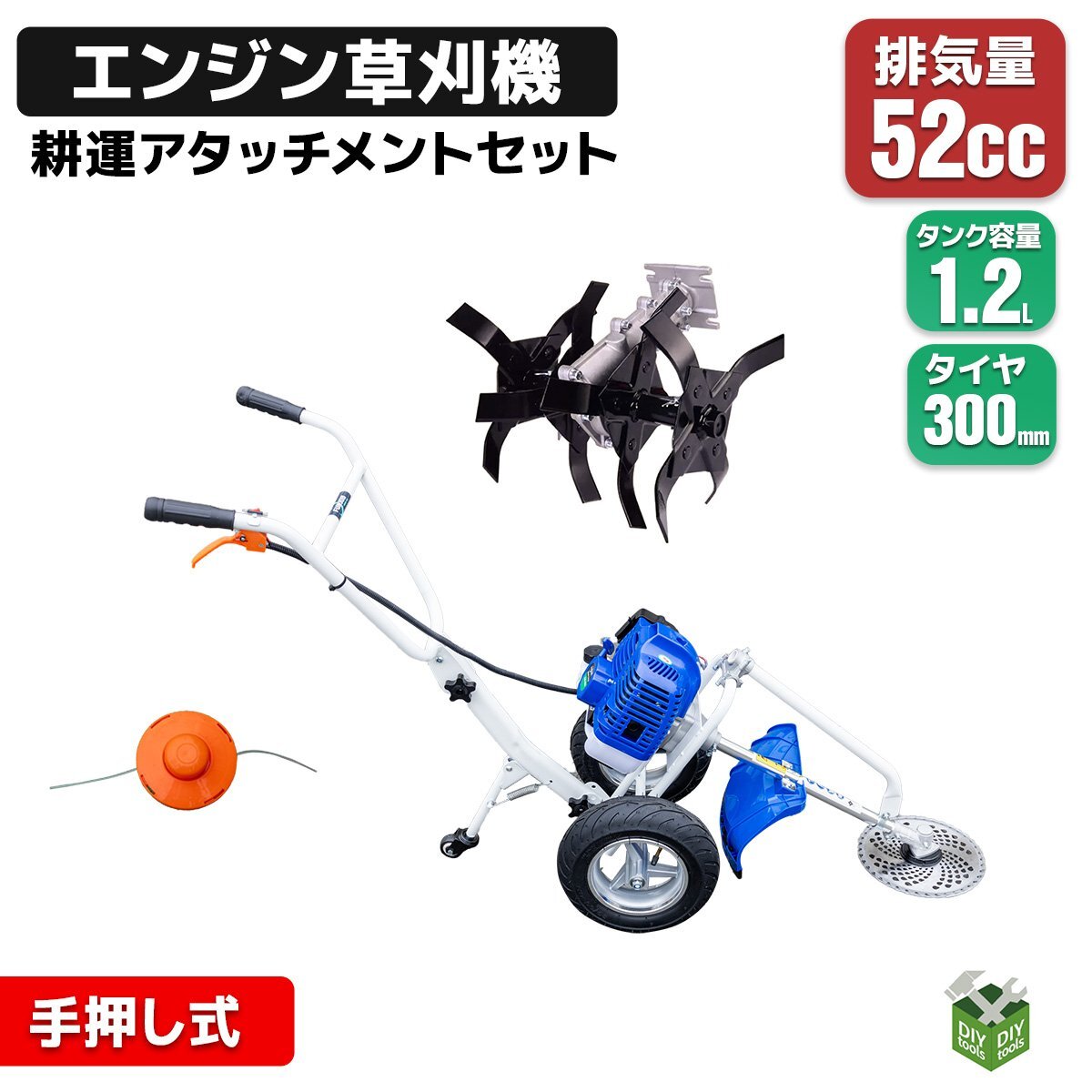 ●新品!耕運機アタッチメント付き! 1台2役 52cc エンジン式 草刈機 草刈刃 手押し式草刈り機 /チップソー ・ナイロンカッター付き
