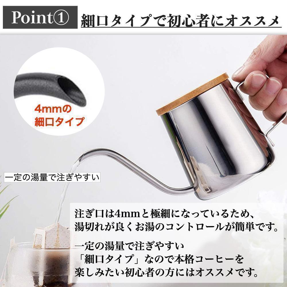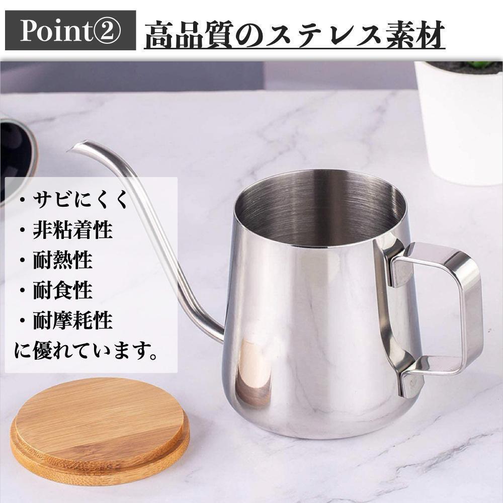 従来のドリップポットに改良を重ね、独自の注ぎ口形状を開発。お湯が垂直に静かに注げるようになりました。ねらったところに注げて湯量調節がしやすい。