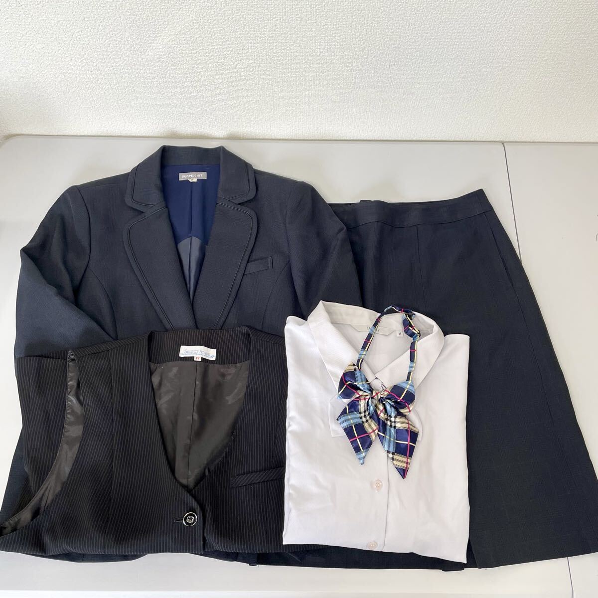 こちらの商品は、中古のジャケット、ベスト、スカート、ブラウス、リボンの5点セットです。
