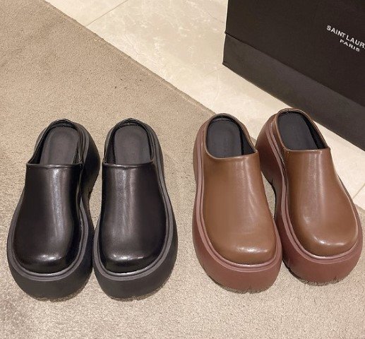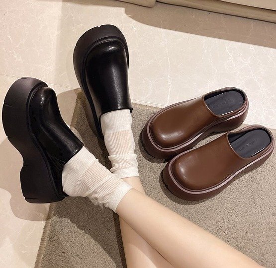 【高品質】全2色 スリッポン ローファー モカシン 厚底靴 プラットフォーム 切り替え シンプル 38 ダークブラウン