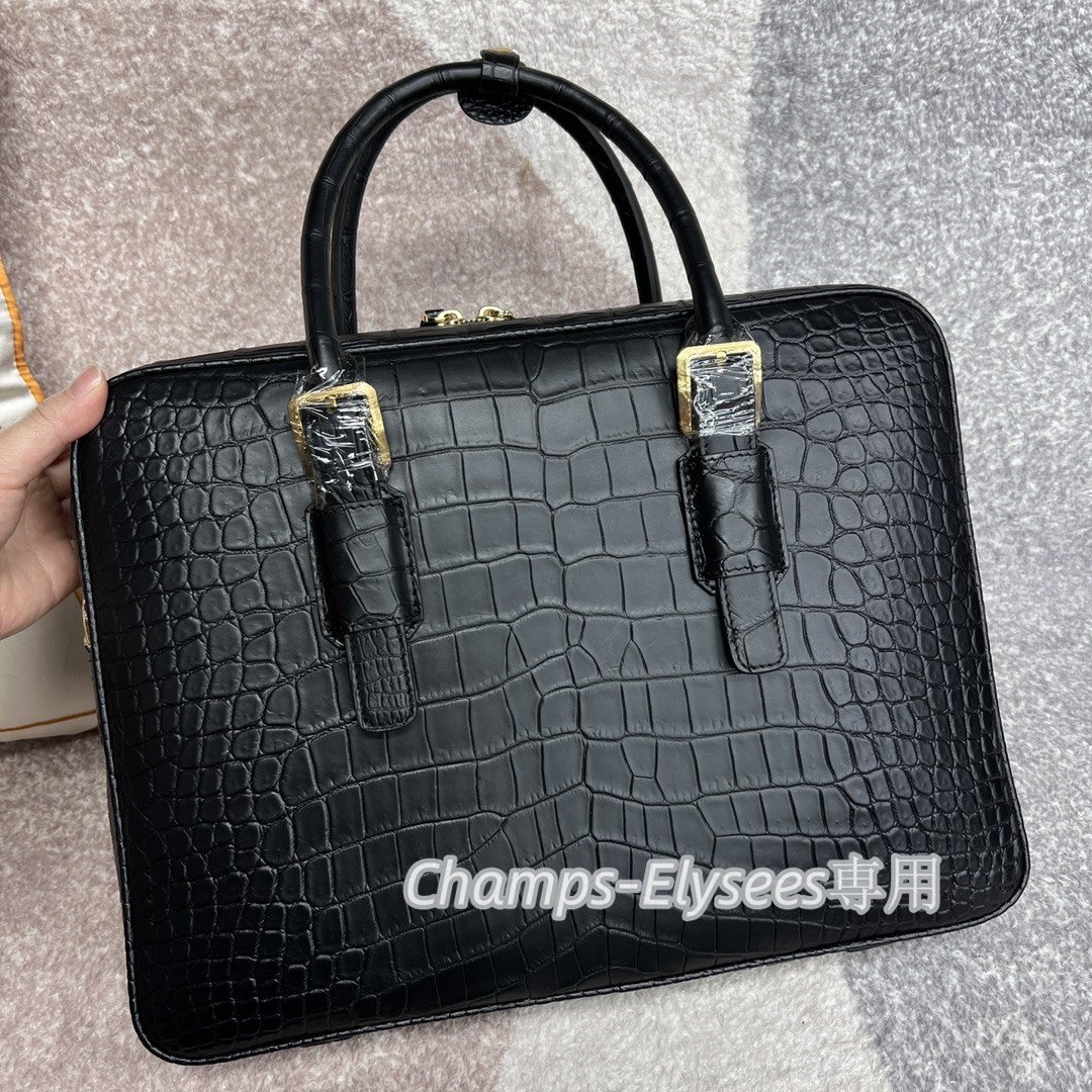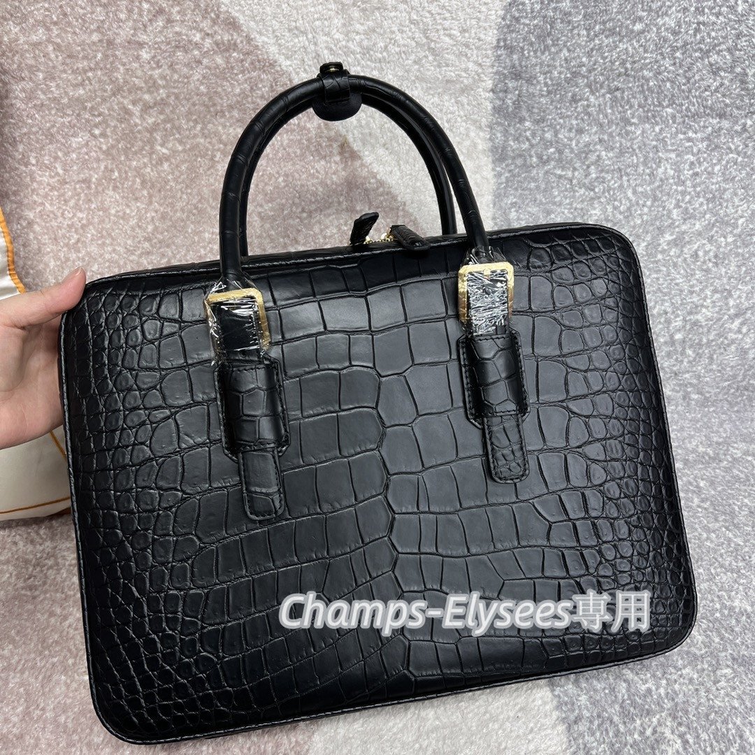 最高級 紳士上品仕事バッグ ビジネスバッグ 本物鰐革 腹革 マット仕上げ クロコダイルレ材ー 本革 ブリーフケース 大容量 黒